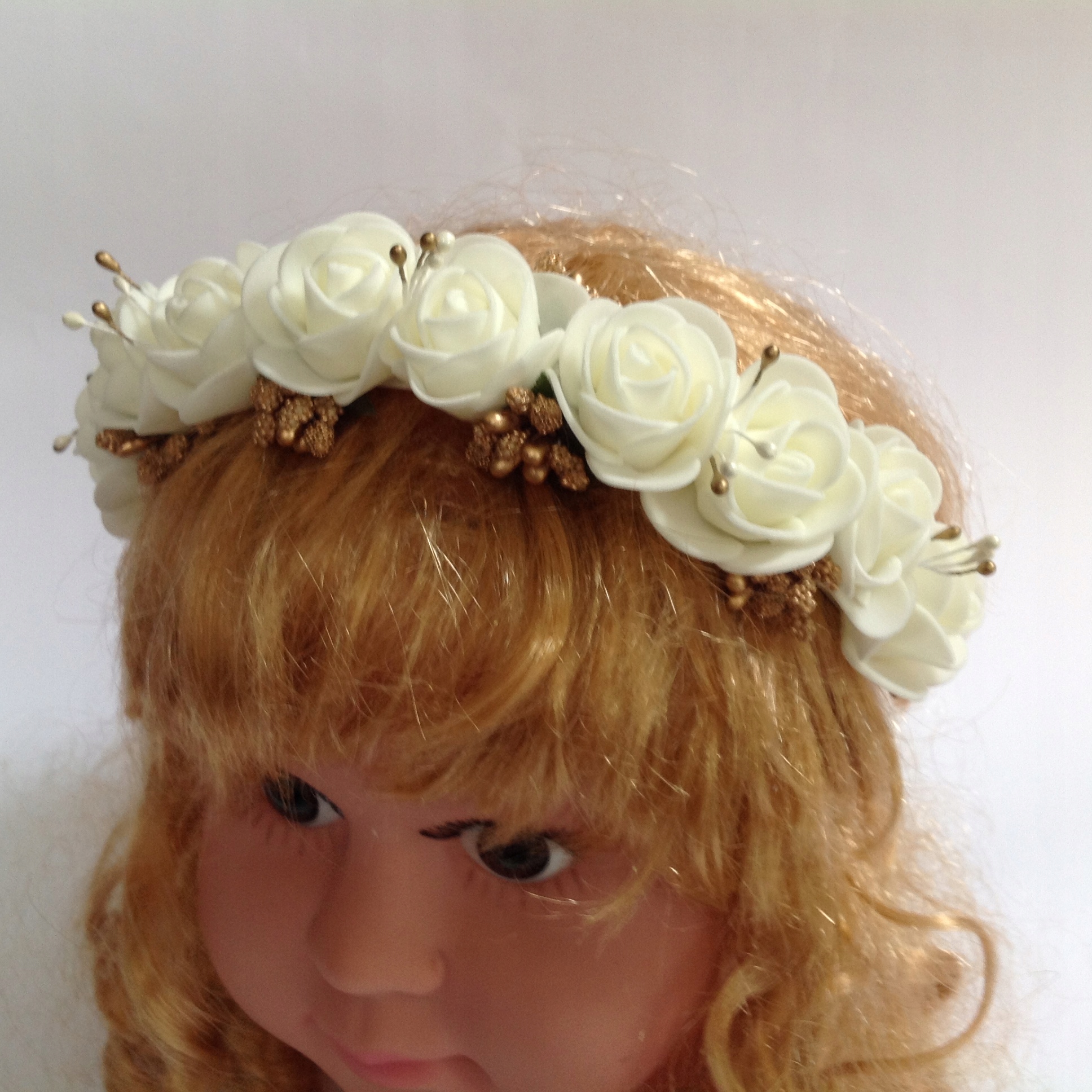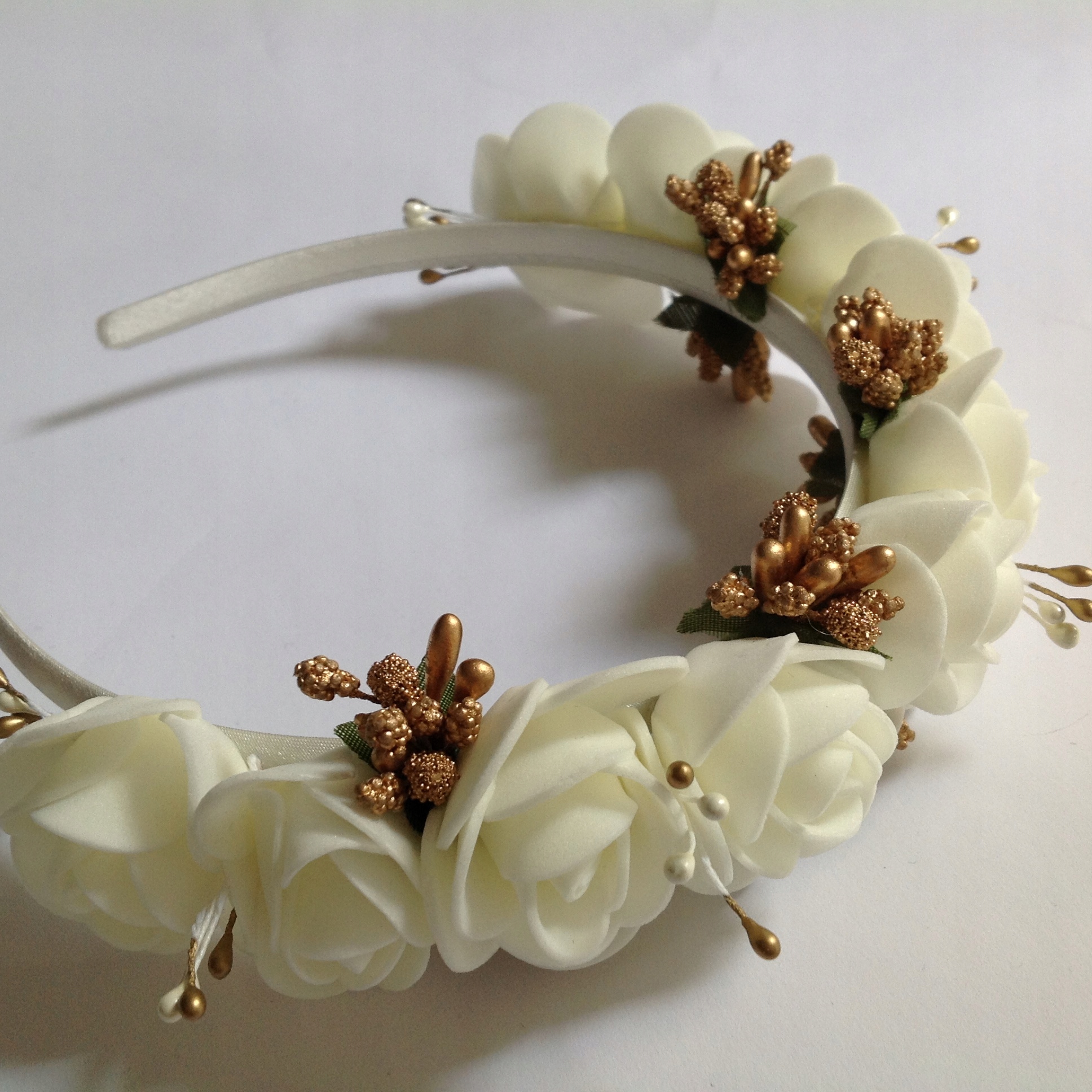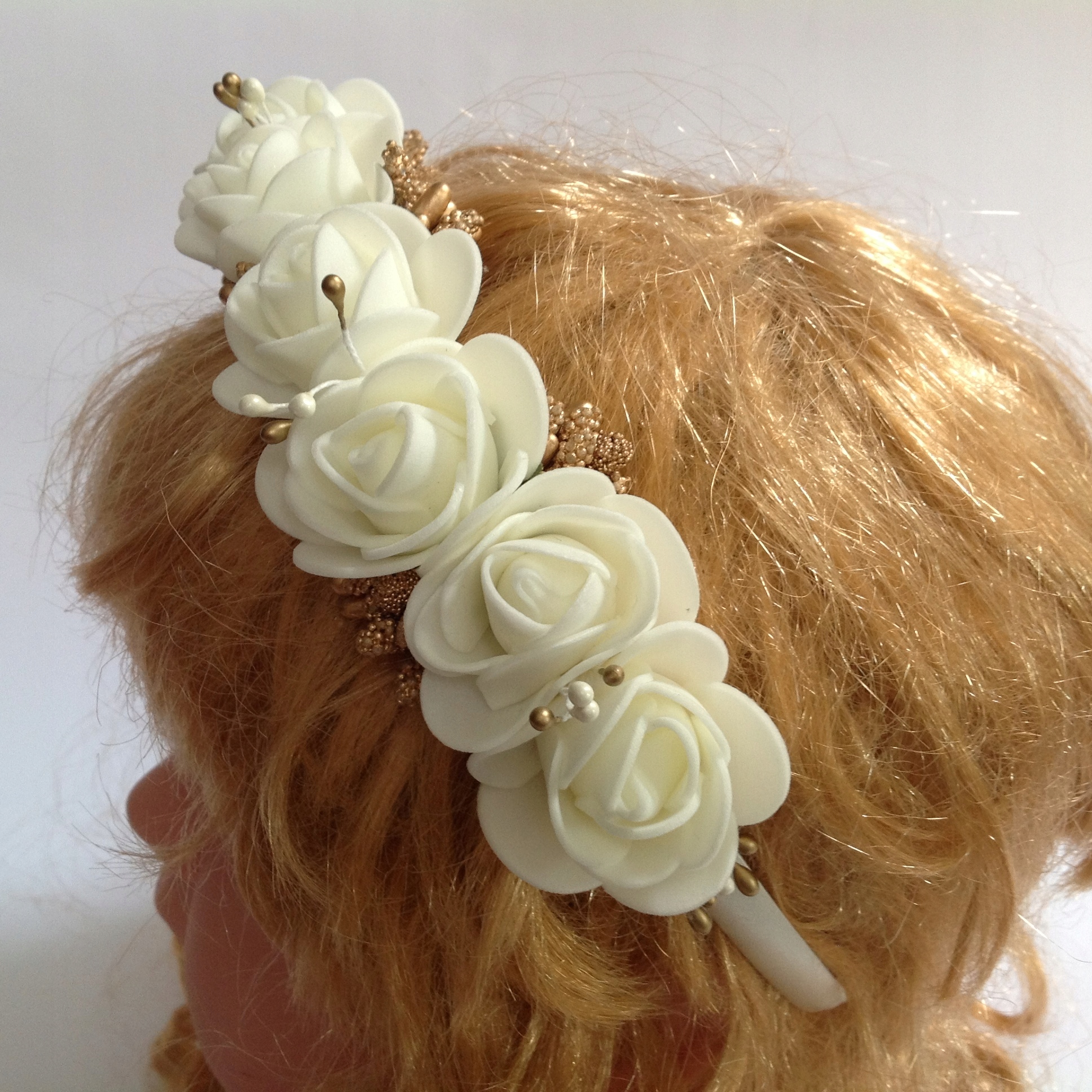 Предмет продажи - ободок с цветами светло-бежевого цвета с добавлением золота,