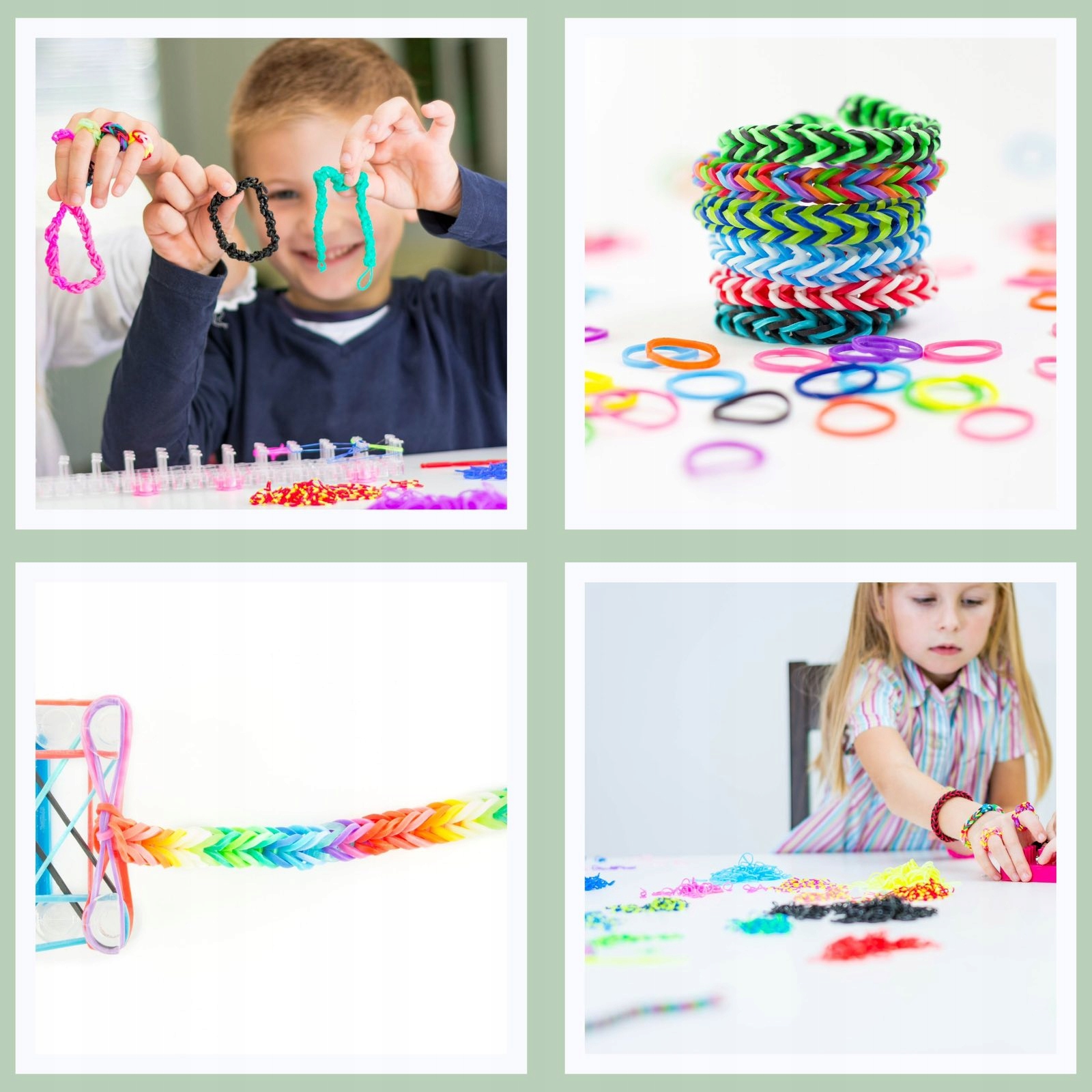 Наш набор для творчества позволяет вам создать собственный браслет, ленту для волос, бант и многие другие предметы. Браслеты можно украсить яркими подвесками, которые входят в комплект. Они также идеальны в качестве повязки на голову. Набор станет прекрасным подарком каждому ребенку и прекрасно проведённым с ним временем.