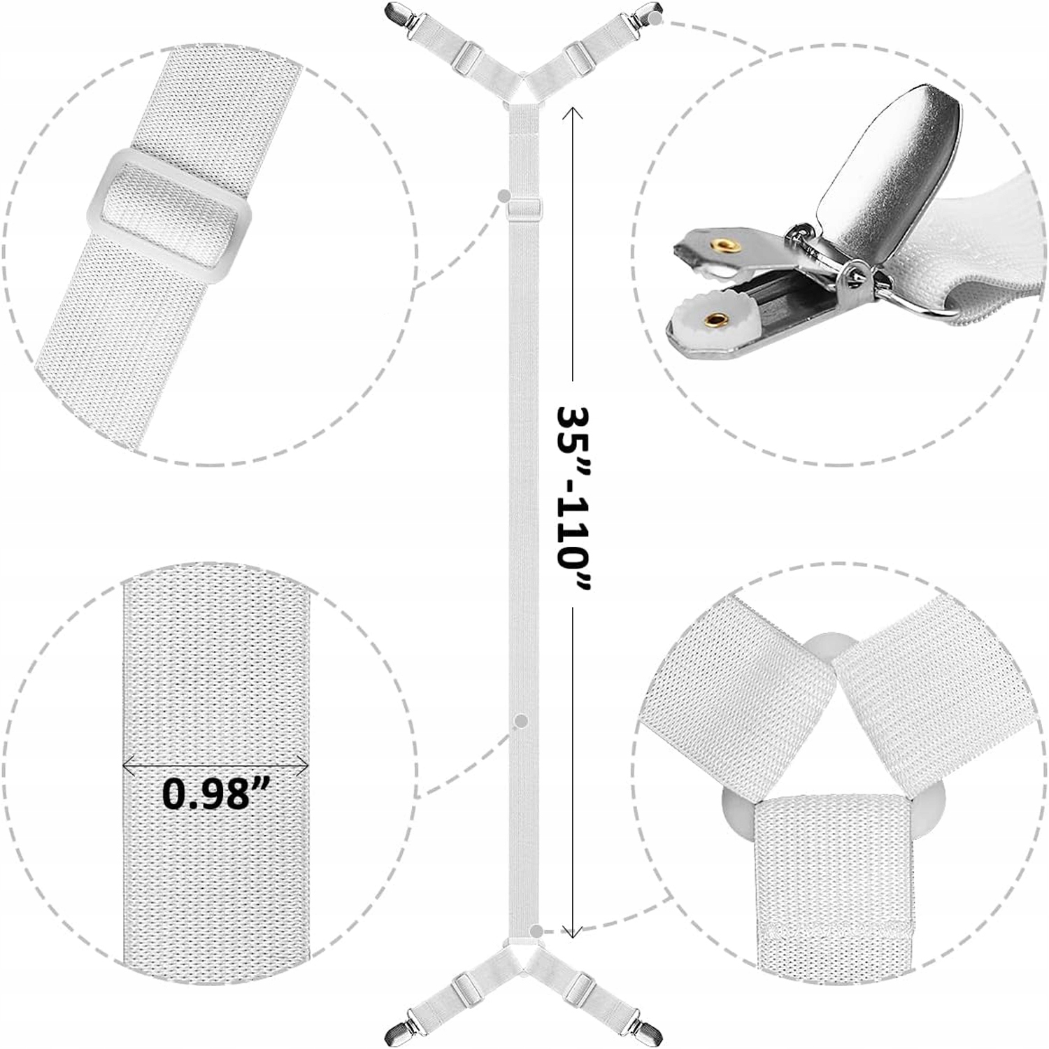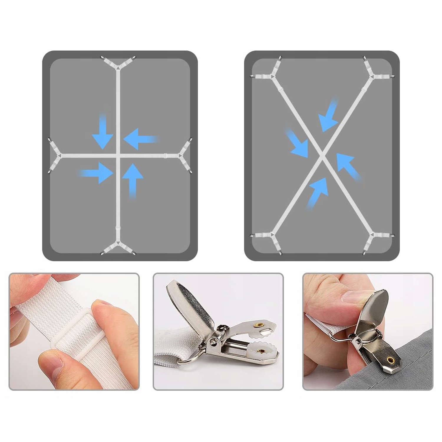 - Прочный:качественные резиновые ленты обеспечивают прочное и долговечное удержание. Высококачественные хромированные зажимы долговечны и не ломаются. Встроенные пластиковые зубцы прочно удерживают простыню, не повреждая ткань. ✅