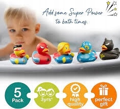 Набор из 5 резиновых уток супергероя ванны - утки захватывающих героев в прозрачной пластиковой коробке - сделайте ванну эпическим