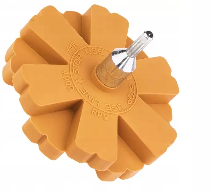 Резиновый/резиновый диск предназначен для удаления остатков клейкой ленты из обода и другой грязи после клейких весов . Продукт содержит адаптер , который позволяет быстро прикрепить щит к устройству с низкой скоростью. Щит гарантирует быстрая и безопасная очистка и подготовка обода для сборки нового веса . Специальная структура диска бабочки делает давление больше . Благодаря этому мы быстрее удалим грязь. Правильно выбранная смесь высококачественных каучуков, из которой производится диск, не повреждает поверхность, не рисует и не оставляет никаких следов на очищенных поверхностях . Использование щита в процессе очищения обода позволяет быстро удалить постоянную грязь. Щит можно использовать с помощью Drill CP 887C, CP 873 с низкой скоростью, а также с буриной аккумулятора PXA72. Максимальная скорость вращения диска составляет 4000 оборотов в минуту . Следует помнить, что если мы хотим использовать шлифовальную машину CP873, которая имеет ручку зажима, то мы должны дополнительно установить держатель инструмента, например, 519 -6672