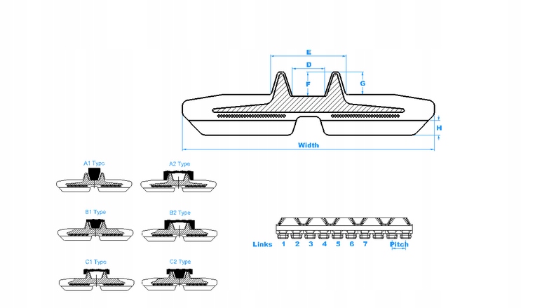 ↗️ Толстый каркас изготовлен из очень прочного натурального каучука и синтетических материалов. Обеспечивает гусеницам максимальную устойчивость к смятию и выдавливанию.