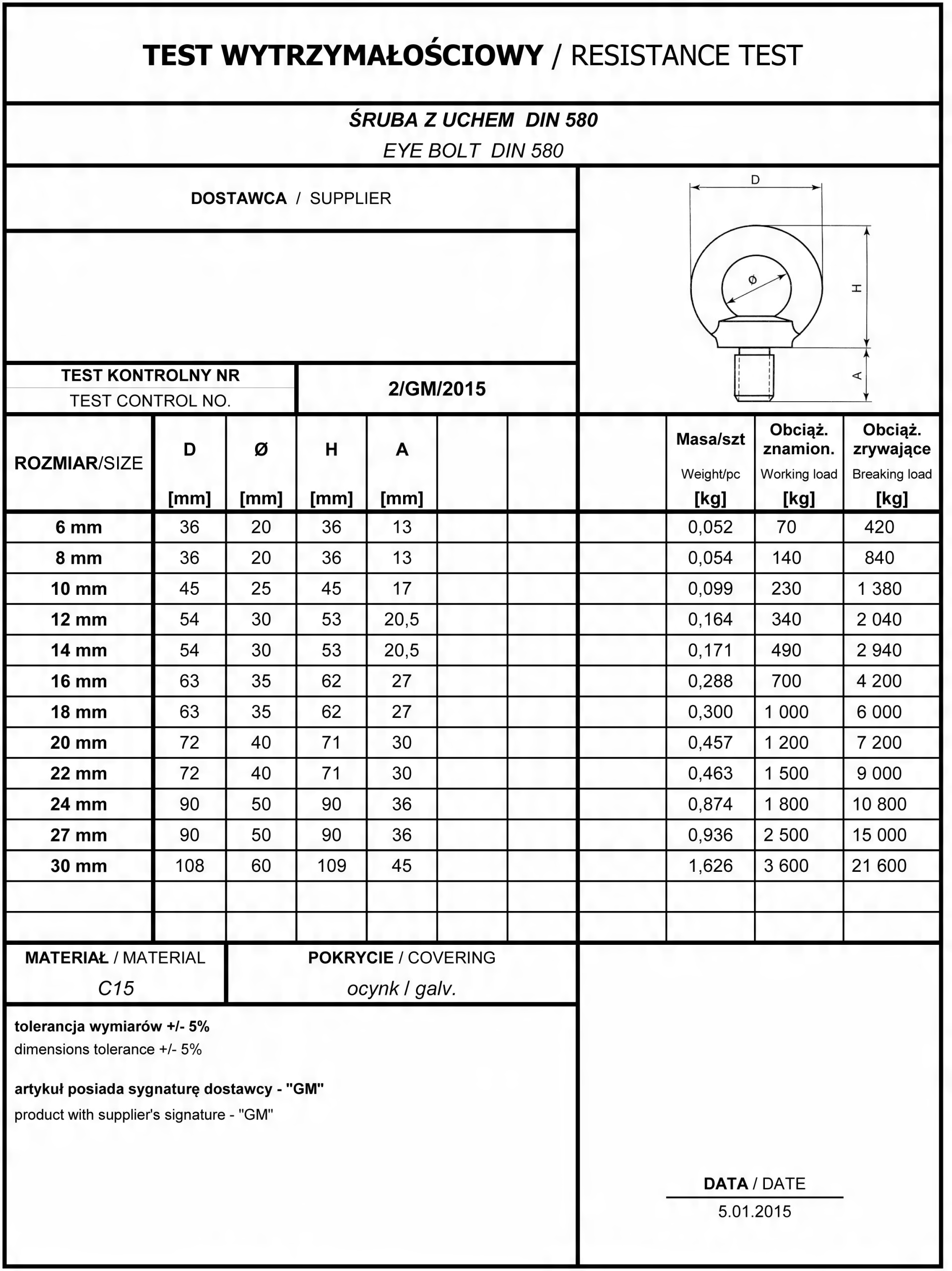 Винт с DIN 580 M22 M22 - 1 ПК / утверждение