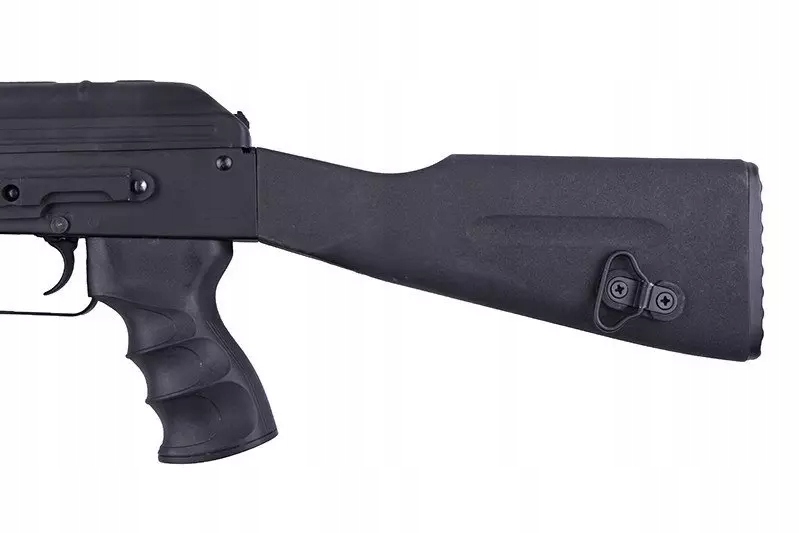 CM048A имеет несколько модификаций по сравнению со стандартной версией – это пистолетная рукоятка, соответствующим образом профилированная. для повышения комфорта, а также переднюю рукоятку с крышкой газопровода. Они оснащены монтажными планками RIS 22 мм, благодаря которым мы можем оснастить винтовку целым рядом дополнительных аксессуаров, таких как оптические прицелы, осветительные и тактические рукоятки и т. д.