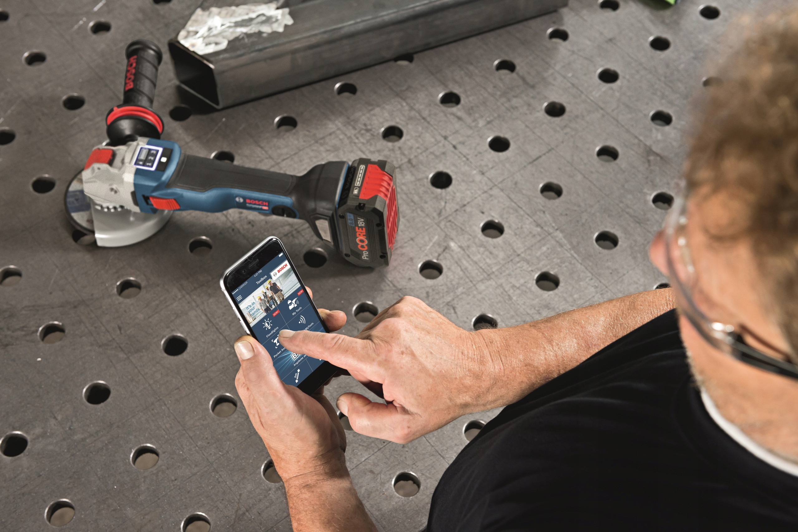 Углошлифовальная машина GWX 18V-10 C оснащена слотом для подключения модуля Bluetooth (модуль доступен в качестве дополнительного оборудования на наших аукционах)
