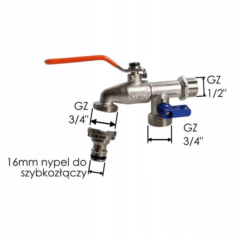 GZ1/2 Garden Ball Tap, 2x GZ 3/4 "Выход + новый