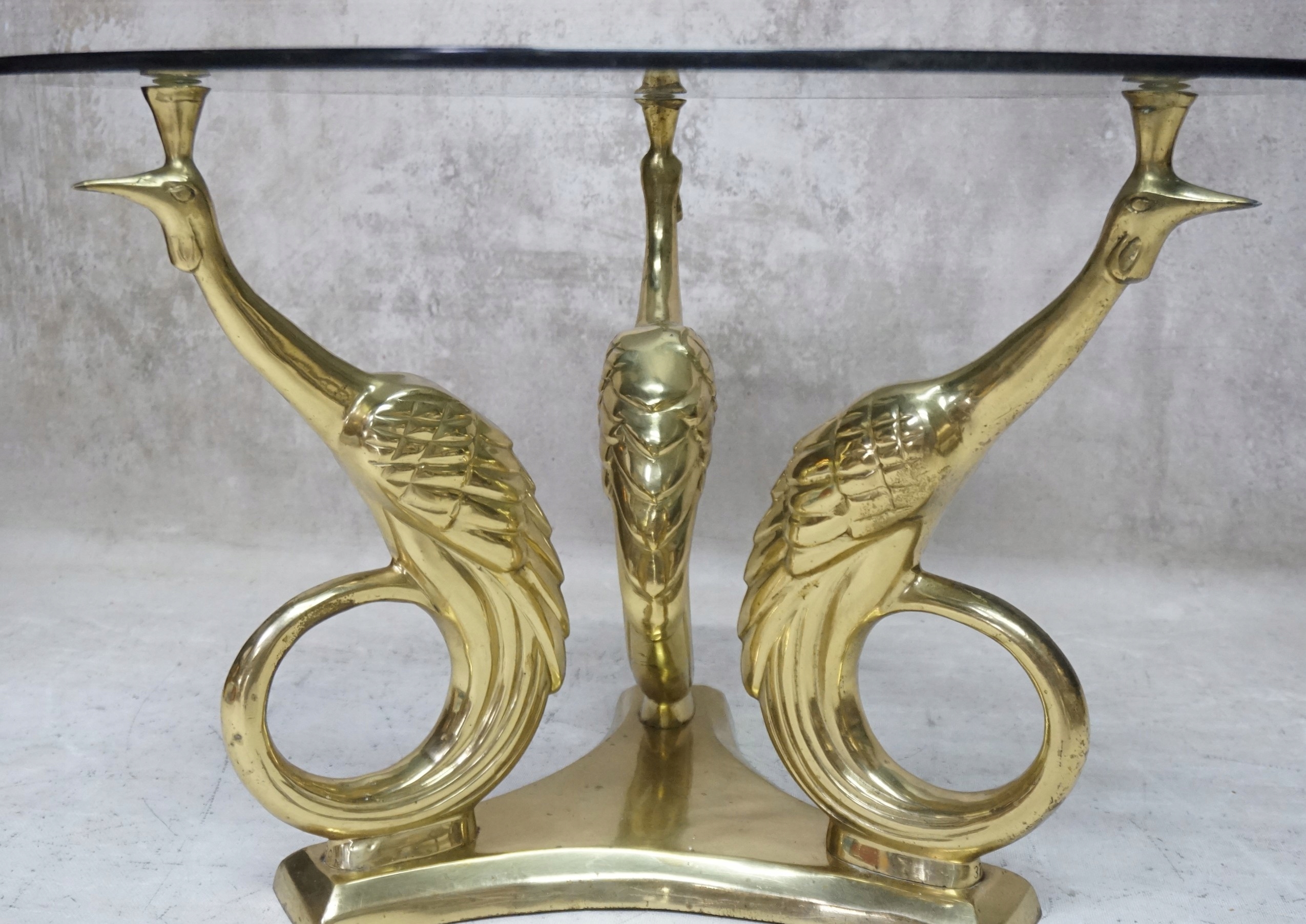 Латунное основание показывает три павлина с свернутыми хвостами.