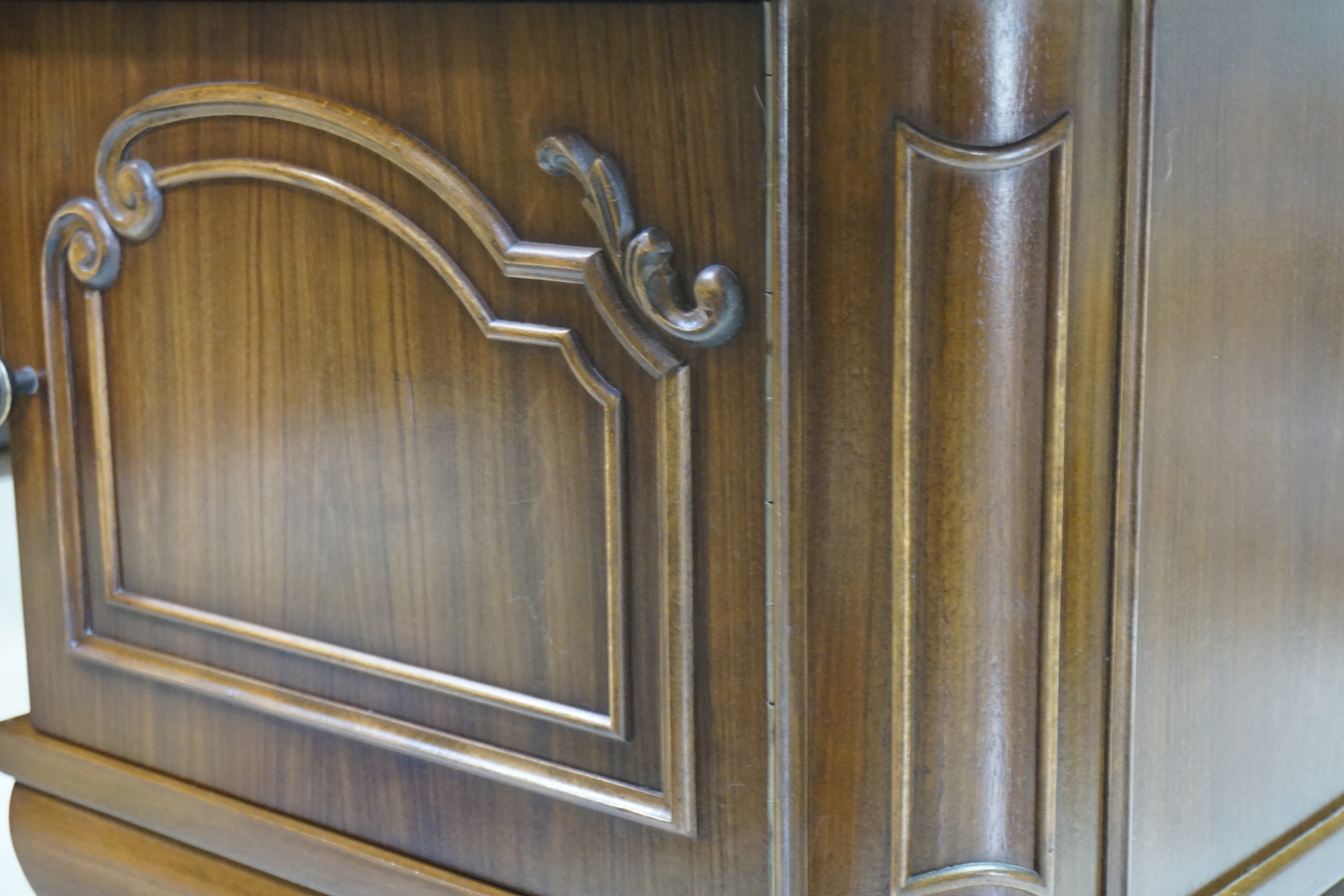 Mebelek, украшенный нежной резьбой и элементами volute.