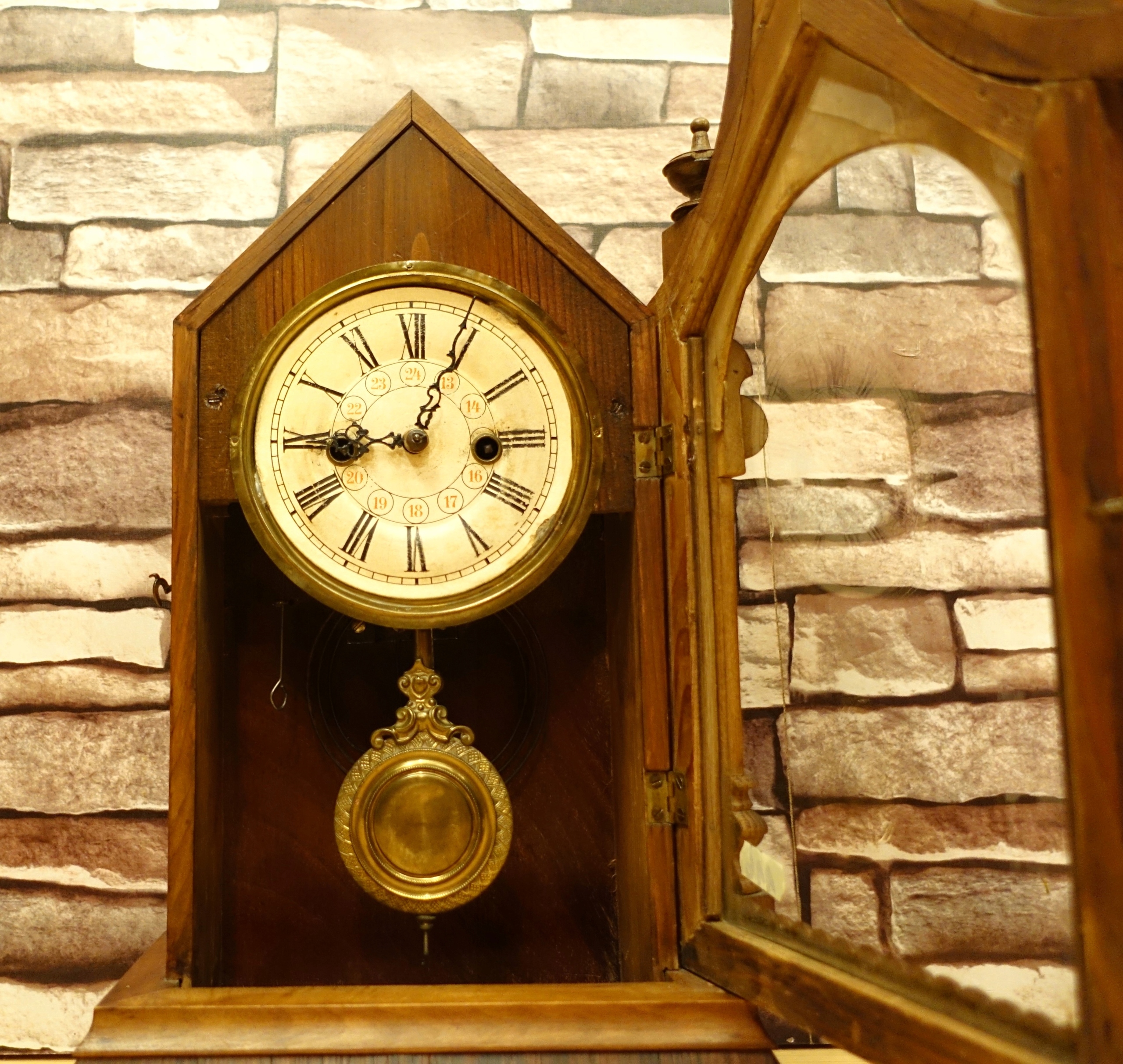 Часы из шпонированного дерева, по форме напоминающие архитектуру часовни. Поэтому часы этого типа называются часовыми часами.
