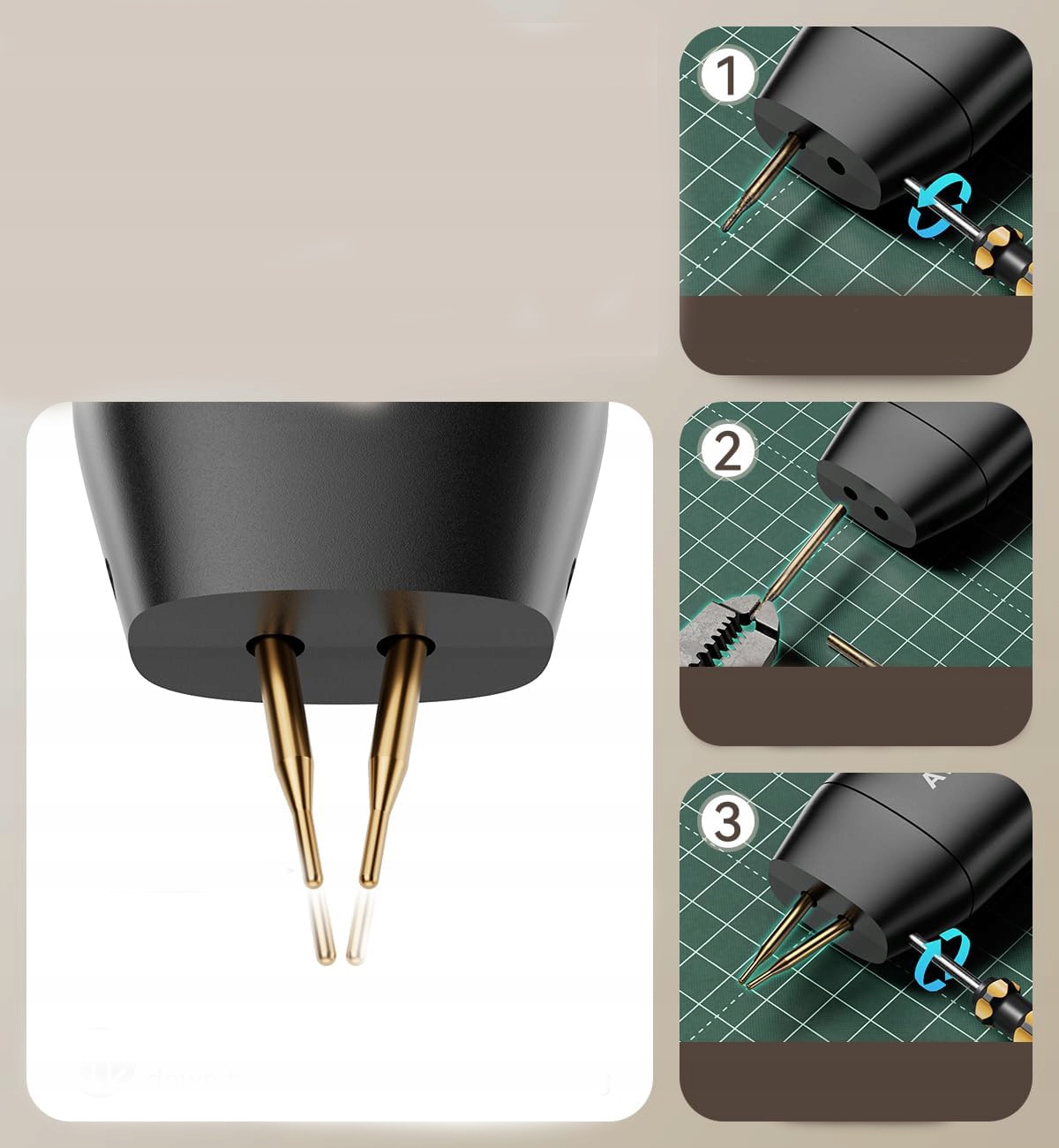 11 Регулируемые шестерни - точечная сварочная машина имеет 11 регулируемой выходной мощности, которая может быть адаптирована к различным точкам. Аккумулятор мобильного телефона со скоростью 1-3, 3-6 шестерни 0,1 мм никелевого металла, 6-11 шестерни 0,12-0,15 Никил. После зарядки вы можете набрать более 200 очков.