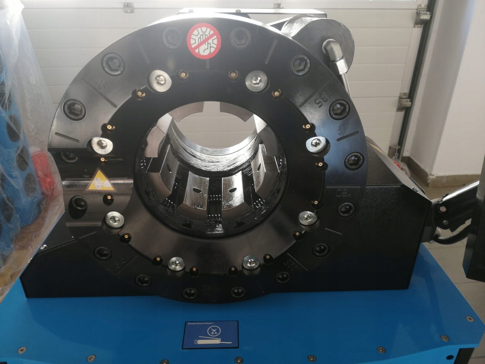 Идеальная машина для обжима локтевых наконечников самые большие размеры. Пресс имеет очень большую головку, позволяющую зажимные элементы диаметром до 140 мм снаружи (промышленные шланги до 4 дюймов). Никакого осевого перемещения! Легкое позиционирование