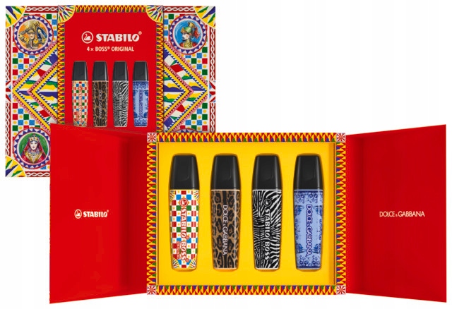 · Ограниченная серия STABILO BOSS ORIGINAL x DOLCE&GABBANA включает четыре популярных цвета хайлайтеров, каждый из которых имеет уникальный оттенок, вдохновленный DOLCE&GABBANA. узор.