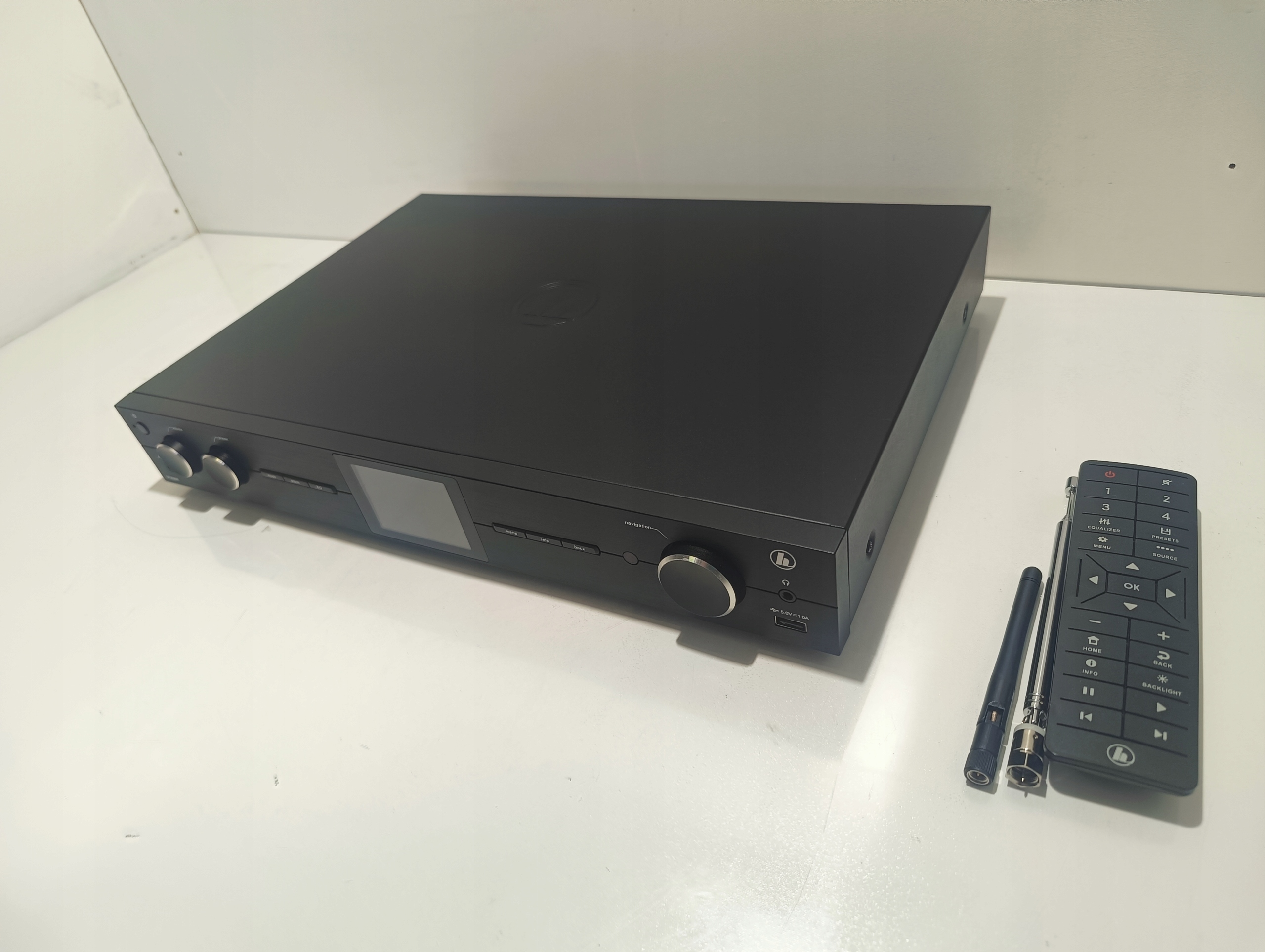 Высокий сервис: вы можете удобно управлять своими устройствами на своем собственном дифале - смартфона или планшета с использованием приложения, удаленного управления или непосредственно на устройстве. Радио дает вам возможность сэкономить 30 любимых интернет -радиостанций и местных радиостанций. Также доступна функциональность создания любимых списков и обслуживания персональных потоков.