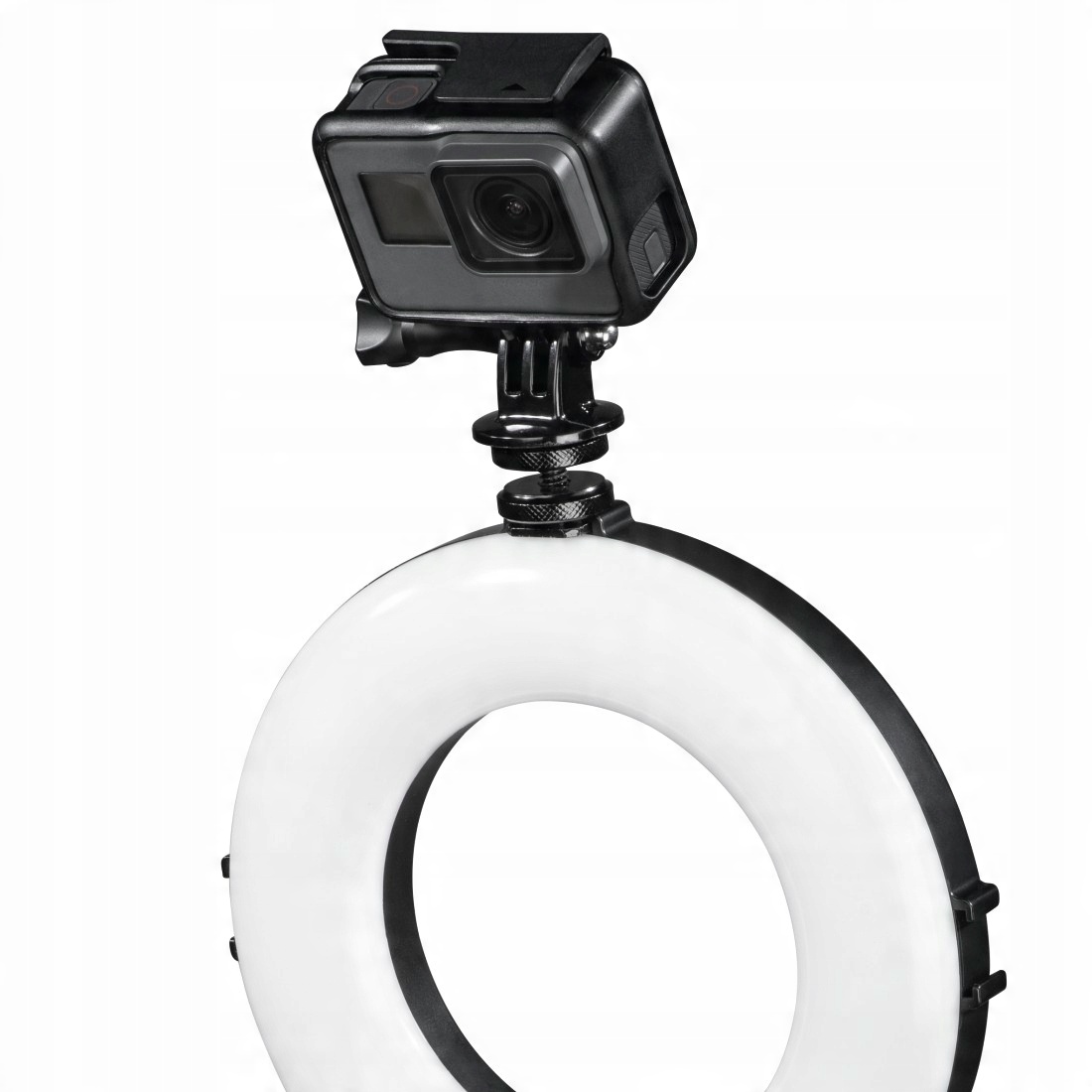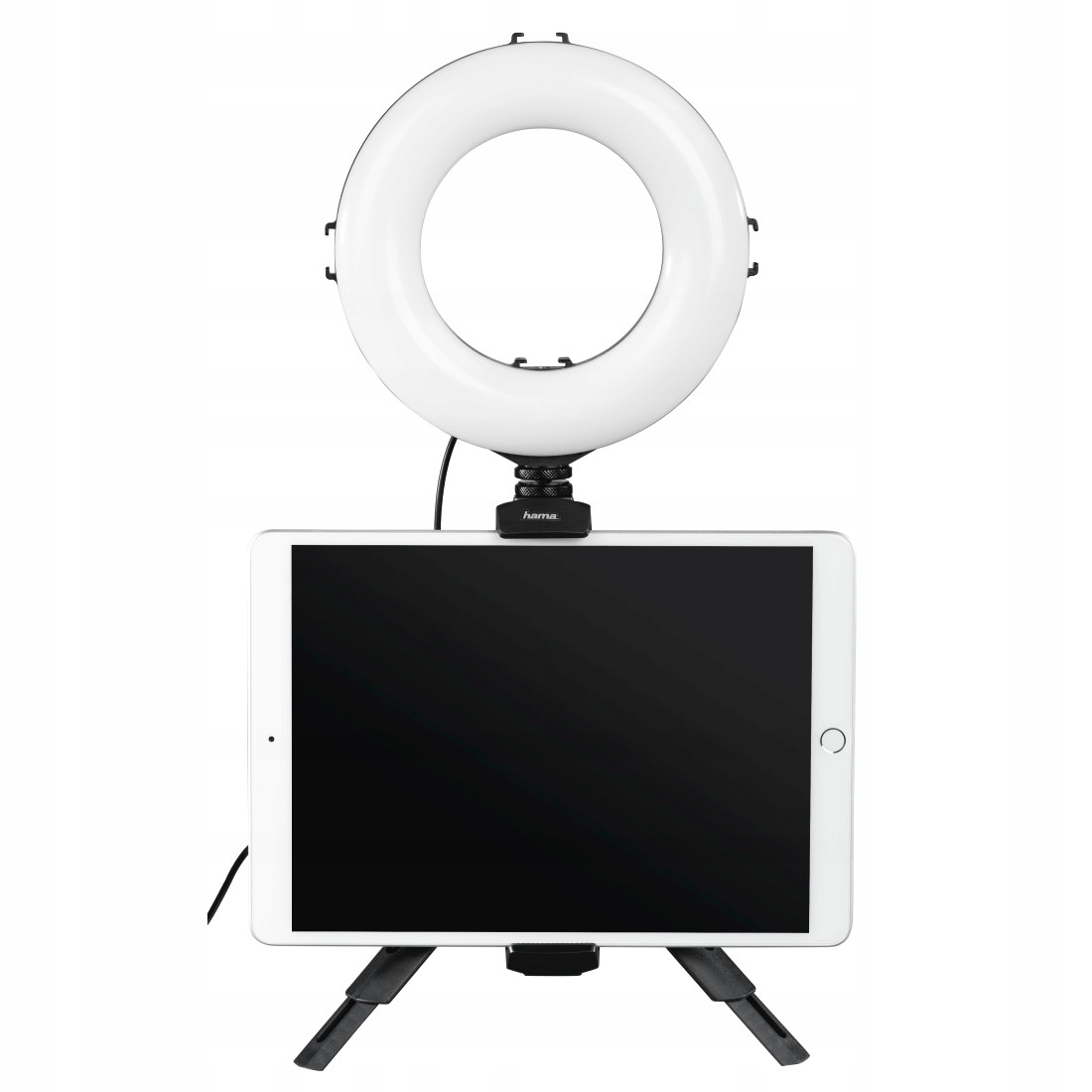- Кольцевая лампа 6 "(внешний диаметр 16 см) с 48 светодиодами и с проводным пультом дистанционного управления