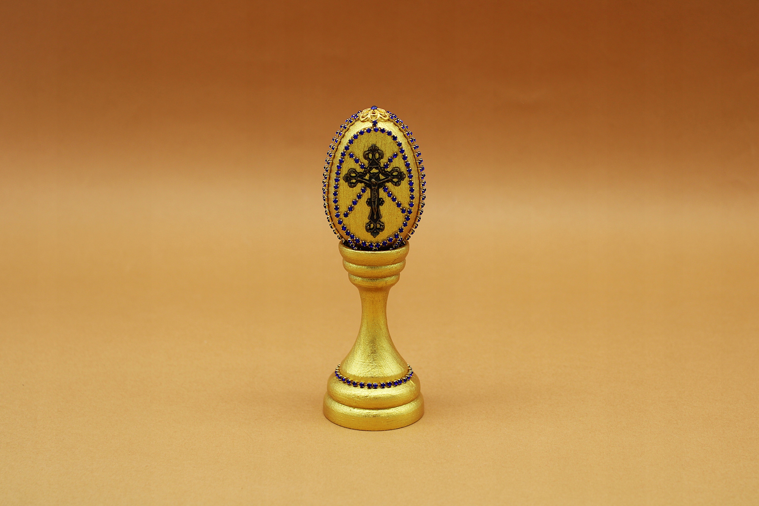 HAND MADE GRUBO ZŁOCONE JAJKO JEZUS NA KRZYŻU