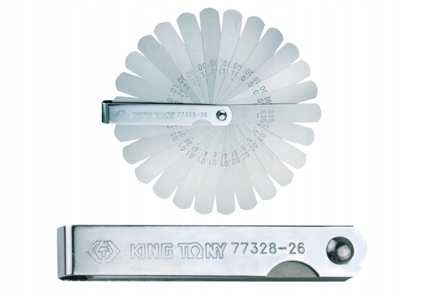 Щупы King Tony, 26 штук. Размер пластины 1/2" x 3", размеры 0,0015", 0,002", 0,0025". , 0,003", 0,004", 0,005", 0,006", 0,007", 0,008", 0,009", 0,010", 0,011", 0,012", 0,013", 0,014", 0,015", 0,016", 0,017", 0,018 " , 0,019", 0,020", 0,022", 0,023", 0,024", 0,025".''"'