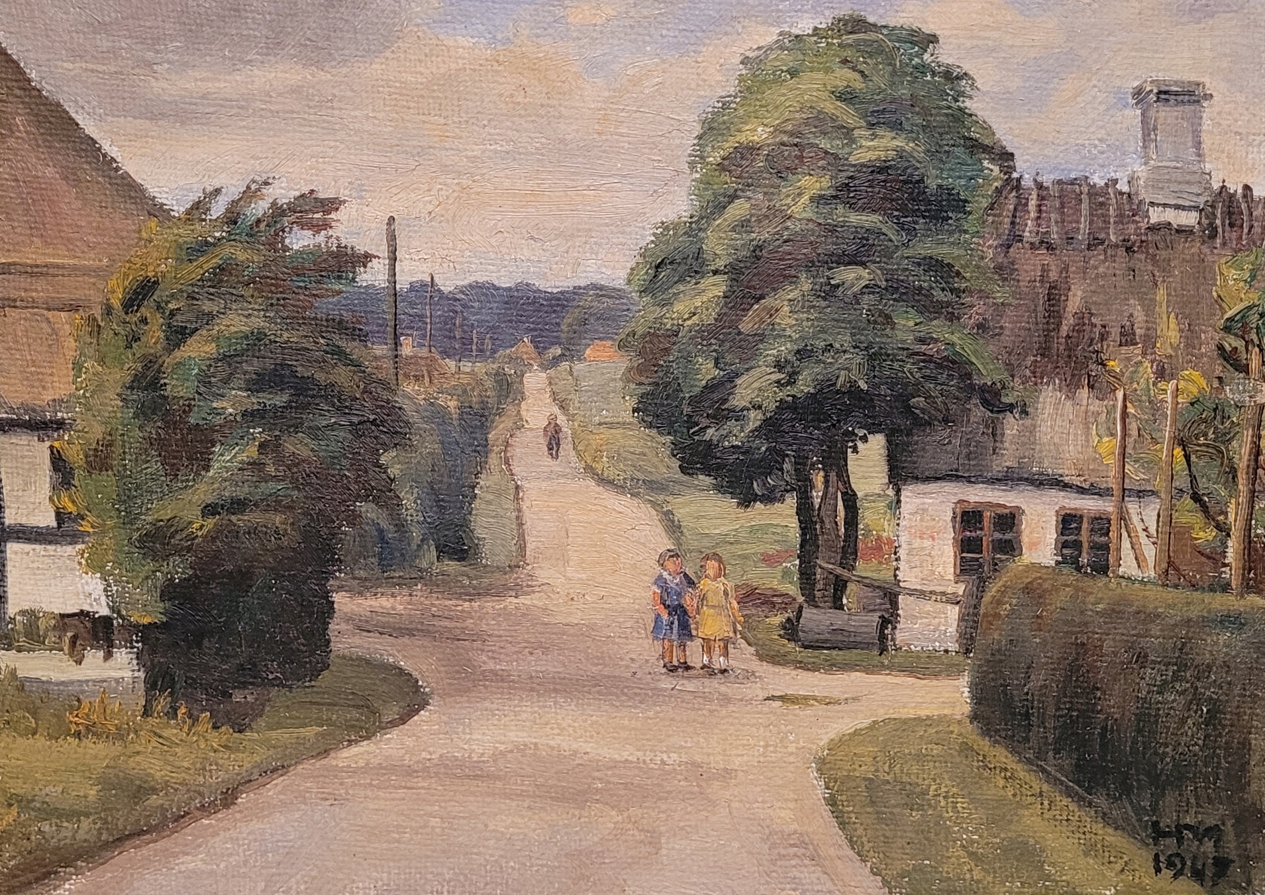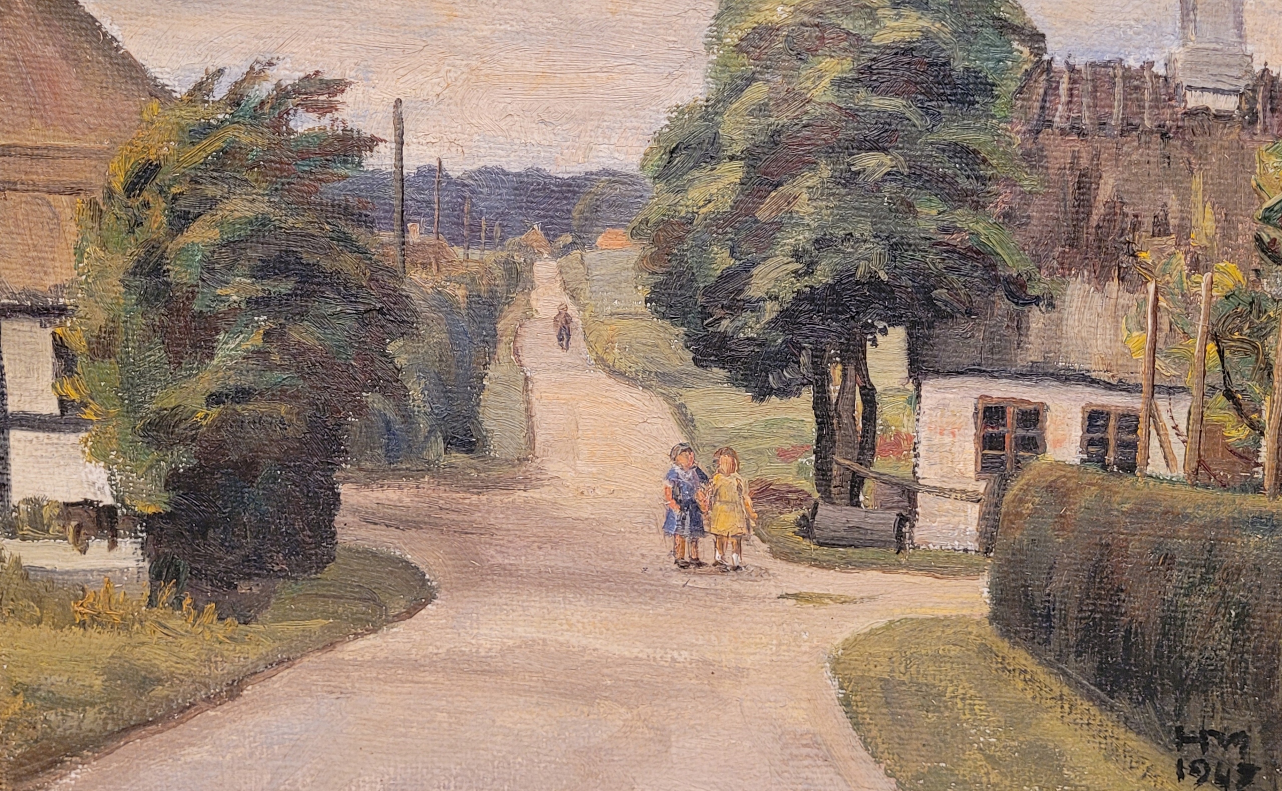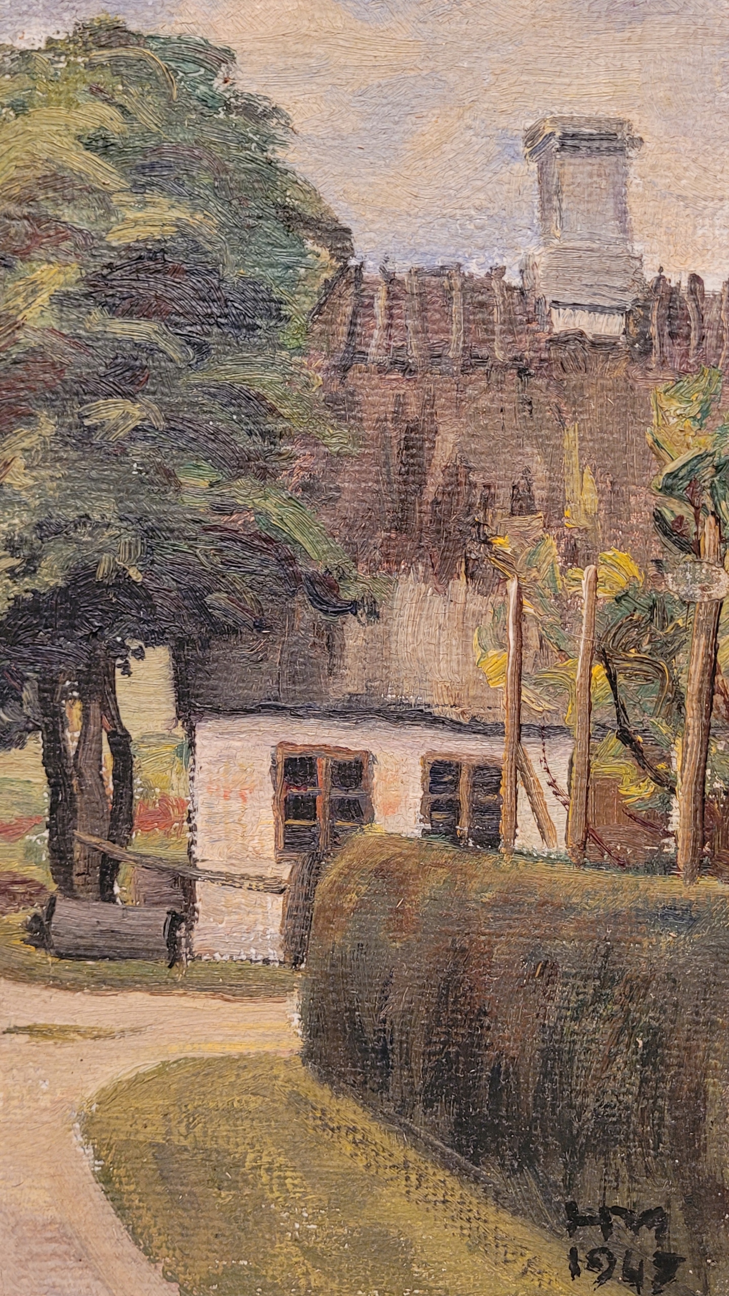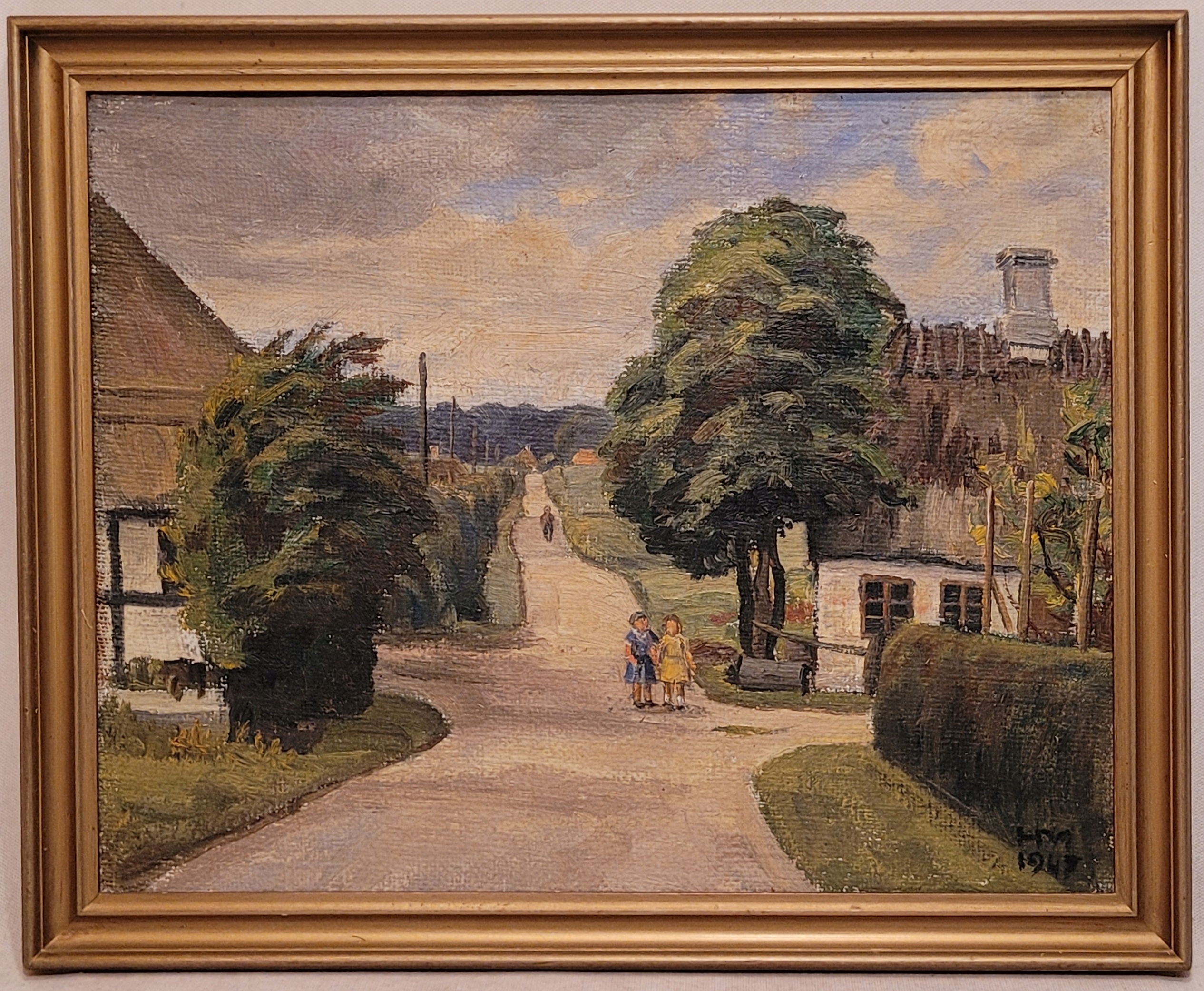 ХАРАЛЬД МАДСЕН (1894-1966) - "СЕЛЬСКАЯ СЦЕНА", картина маслом 1947 года.