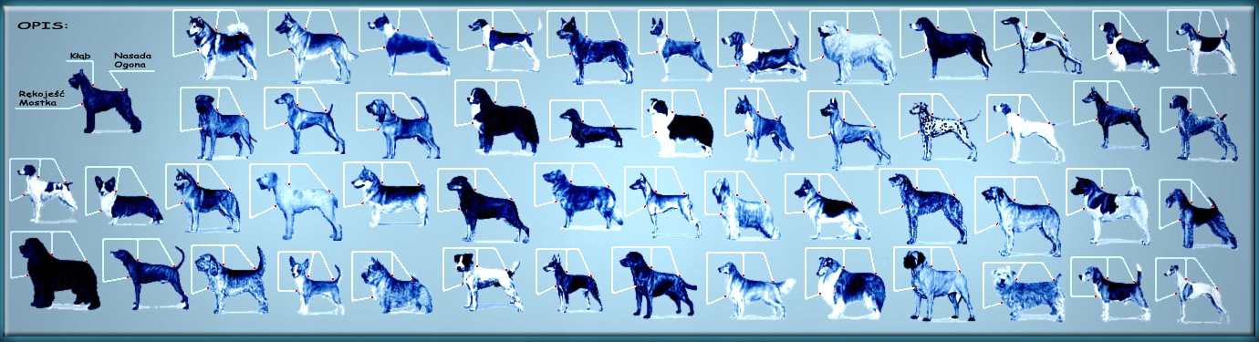 Ниже мы предоставляем коллекцию избранных пород с отмеченными основными точками измерения: грудина, холка иоснование хвоста. р>