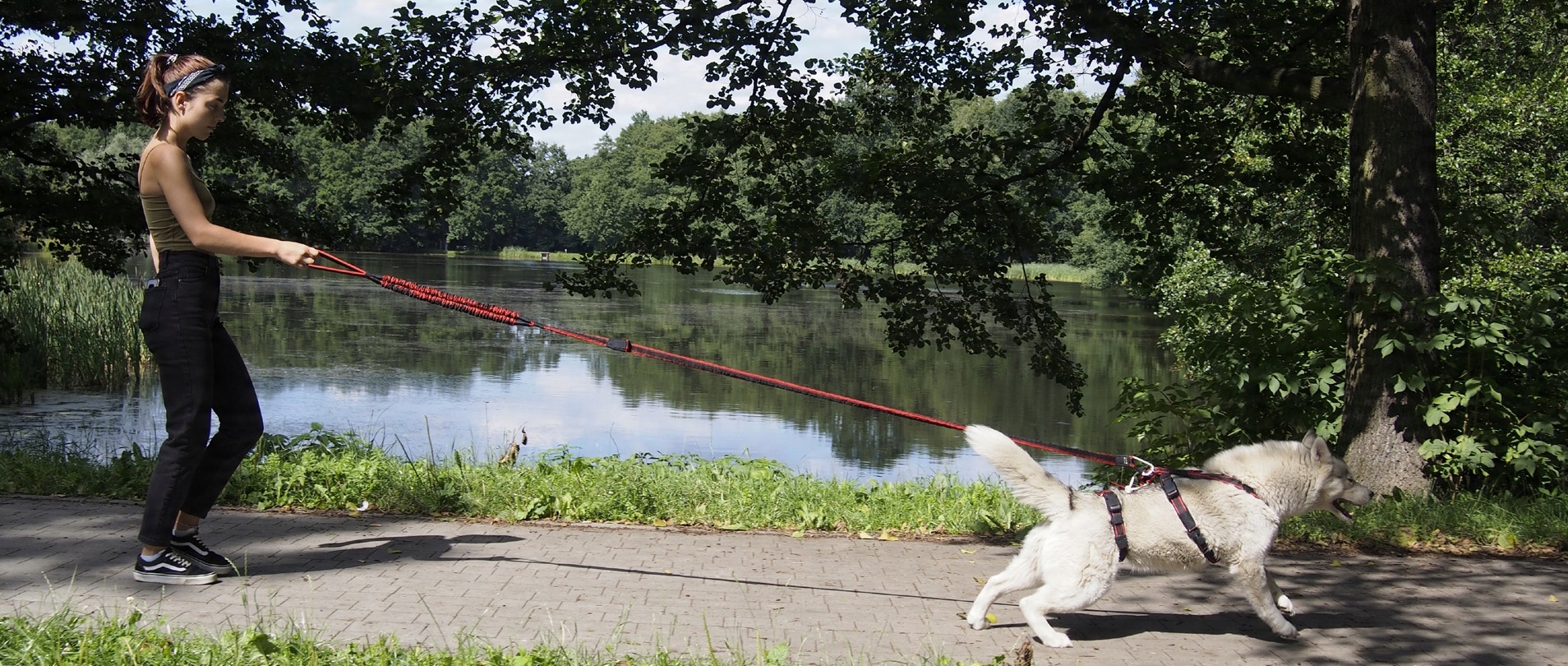 Амортизирующие поводки подстраиваются под вес собаки/упряжки.