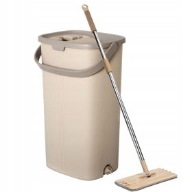 Компактная плоская шваблина с ведром, оборудованным современной системой сжимания.