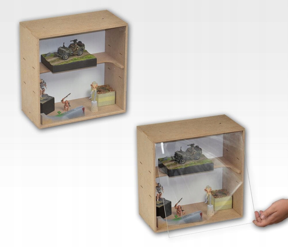 Большой дисплейный модуль WIP с акриловым стеклом для защиты моделей от пыли и повреждений, регулируемая высота полки.