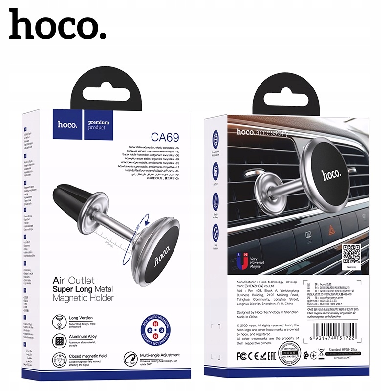 hoco CA69 Sagesseдлинный, Алюминиевый магнитный держатель для телефона или планшета весом не более 1 кг, предназначенный для установки в вентиляционную решетку автомобиля.