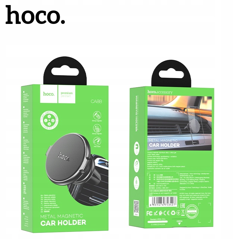 hoco. CA88 Fantasy — магнитный держатель, повышающий безопасность вождения, крепится к вентиляционной решетке автомобиля с помощью силиконовой заглушки, оснащенной шаровым шарниром, позволяющим крепить устройство под углом 90 градусов с помощью Вращение на 360 градусов для еще большей адаптации к потребностям водителя.