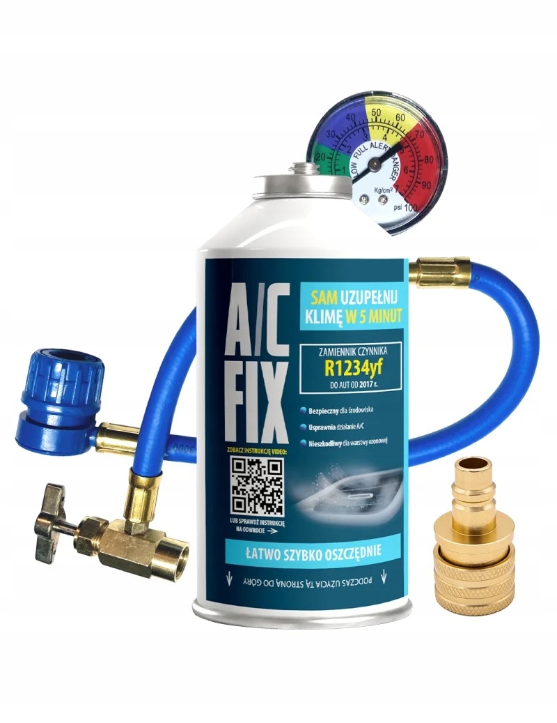 Комплект самозаправки автомобильного кондиционера AC FIX предназначен для всех автомобилей, выпущенных после 2017 года. Газ кондиционера и шланг с манометром подходят для 100% моделей автомобилей, использующих хладагент R1234yf. >р>