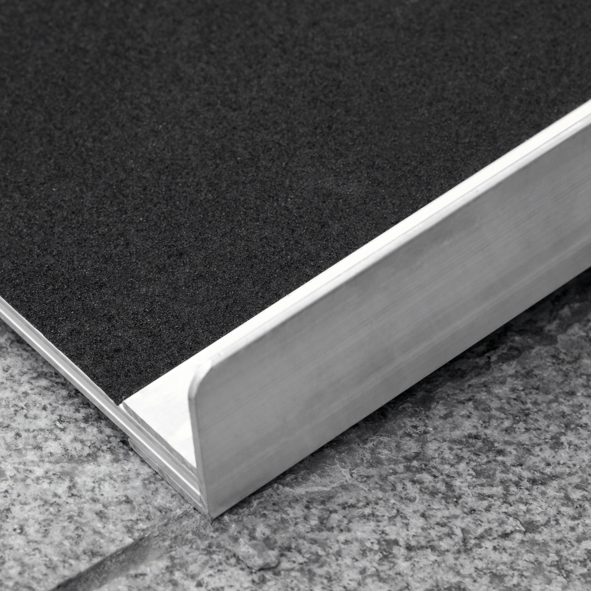 ● stafiel en rooestvrij dankzij aluminumlegering; ● Geschikt Voor Rolstoelen, Scooters en Fietsen; ● het oppervlak - это Bedkt Met Zwart, Slipvast PVC; ● Встречал Ом Vallen Te Voorkomen; ● твиводиг в тройке Vervoeren; ● veiligheidshelling ≤ 30 ° Бидж Эенмалиг Гебруик, ≤ 40 ° Met Hulp; ● Montage nodzakelijk;