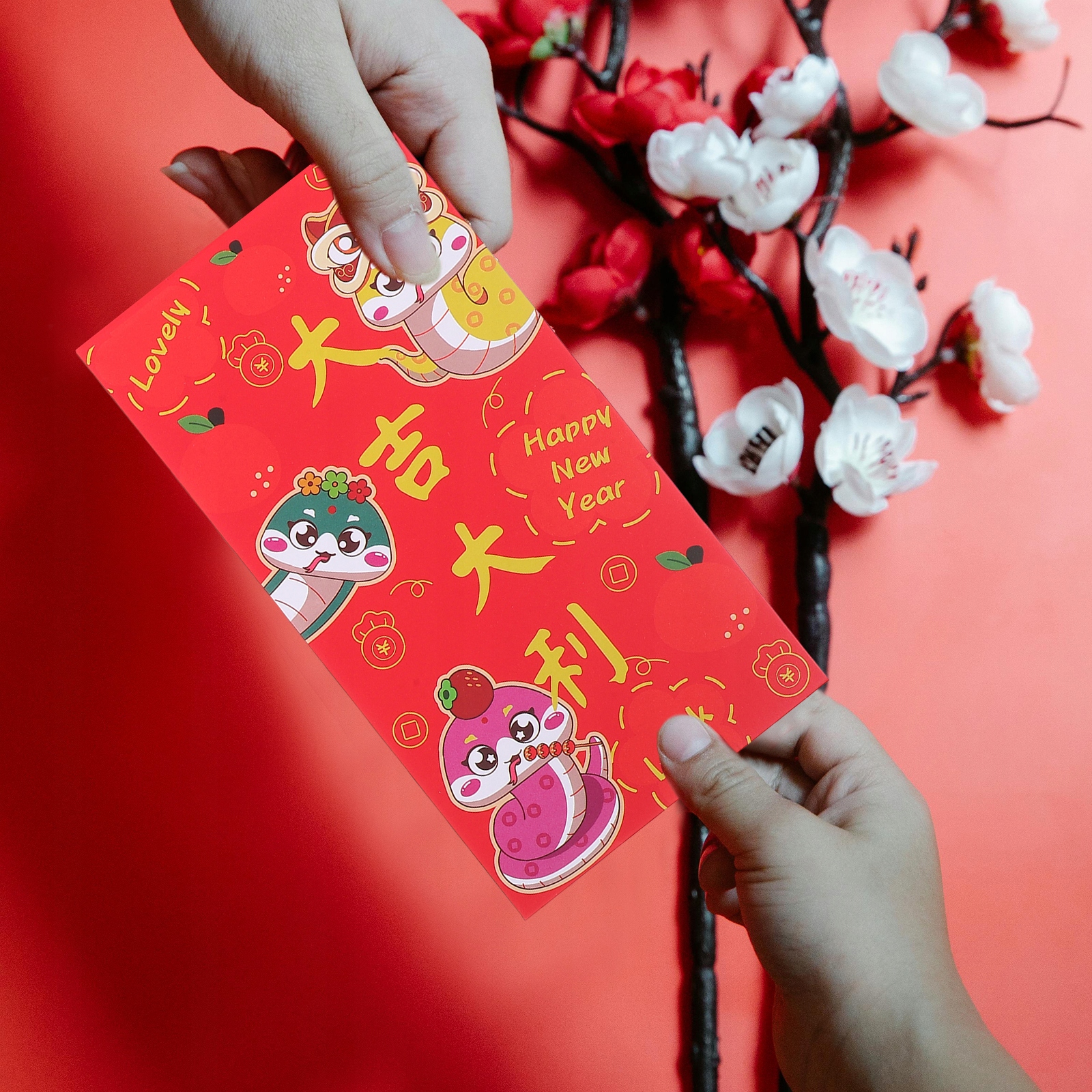✅Отпразднуйте Новый год: отпразднуйте новый год змеи с этими великолепные красные карманы, символизирующие богатство и счастье.