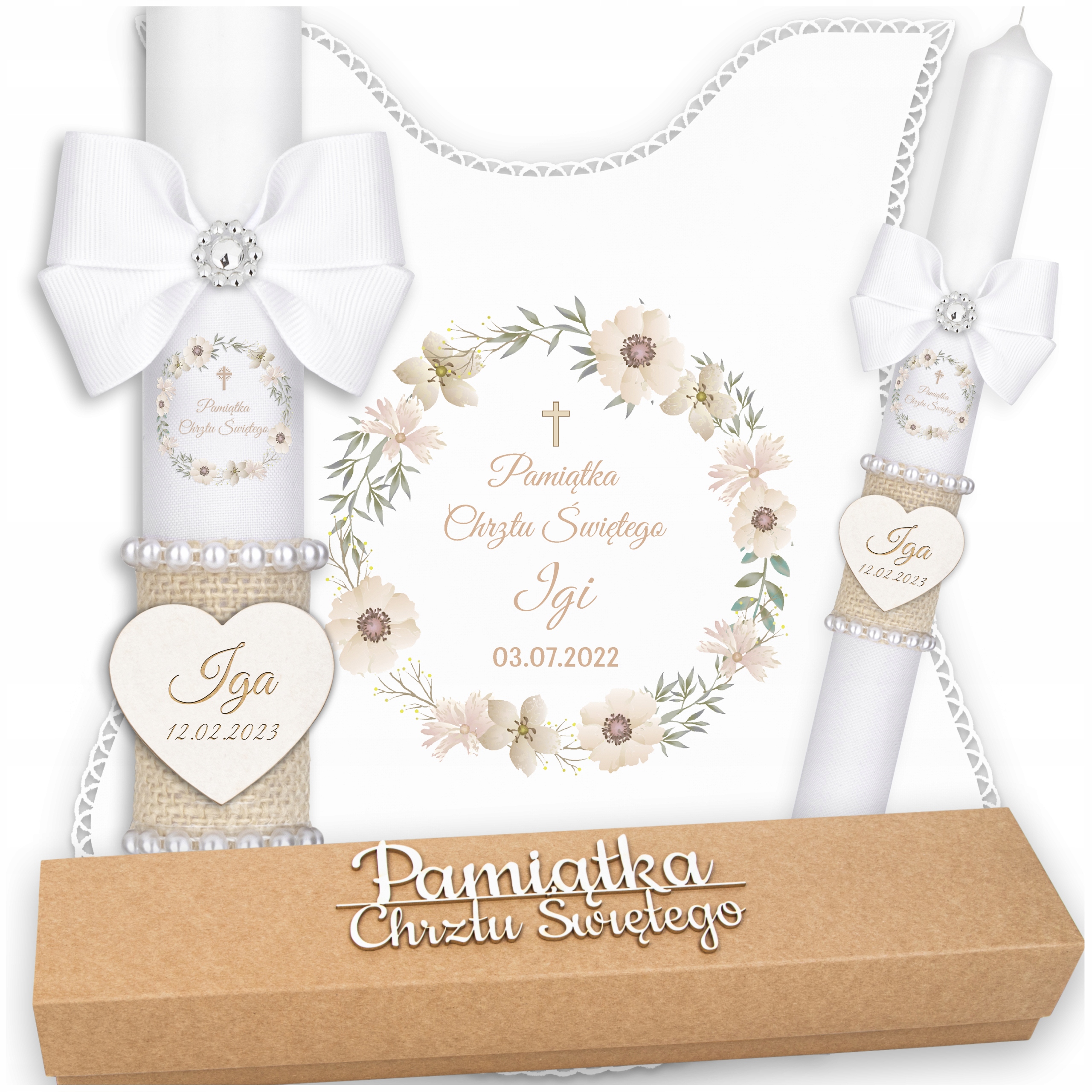 Хрестильна свічка + БІЛИЙ ОДЯГ + скринька