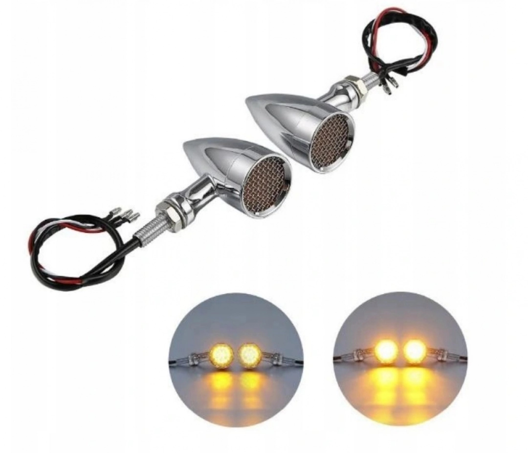Они блестят ясный оранжевый свет. Кабели заканчиваются круглыми разъемами. Подходит для многих мотоциклов-чопперов: