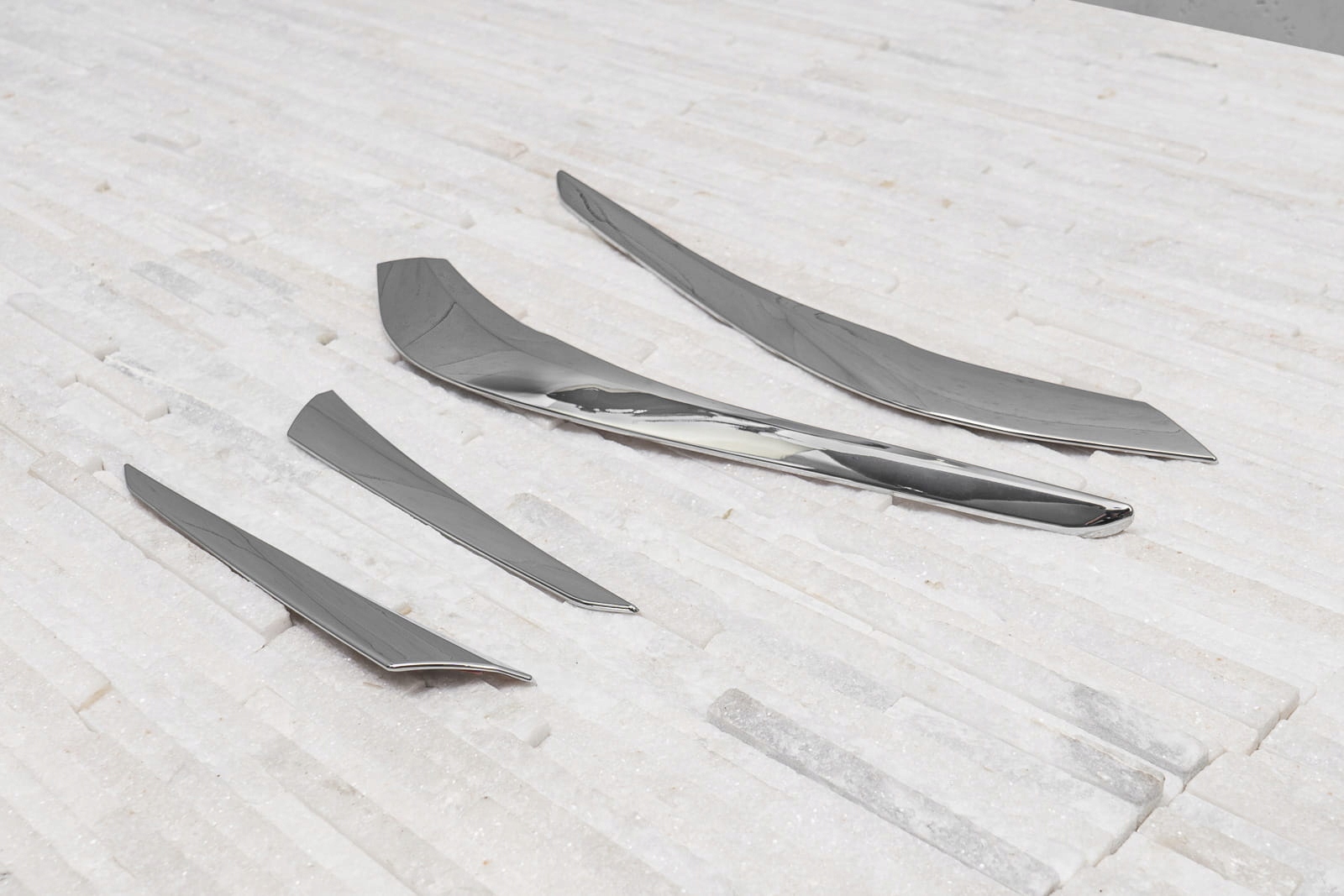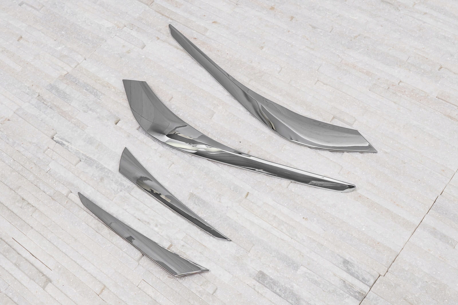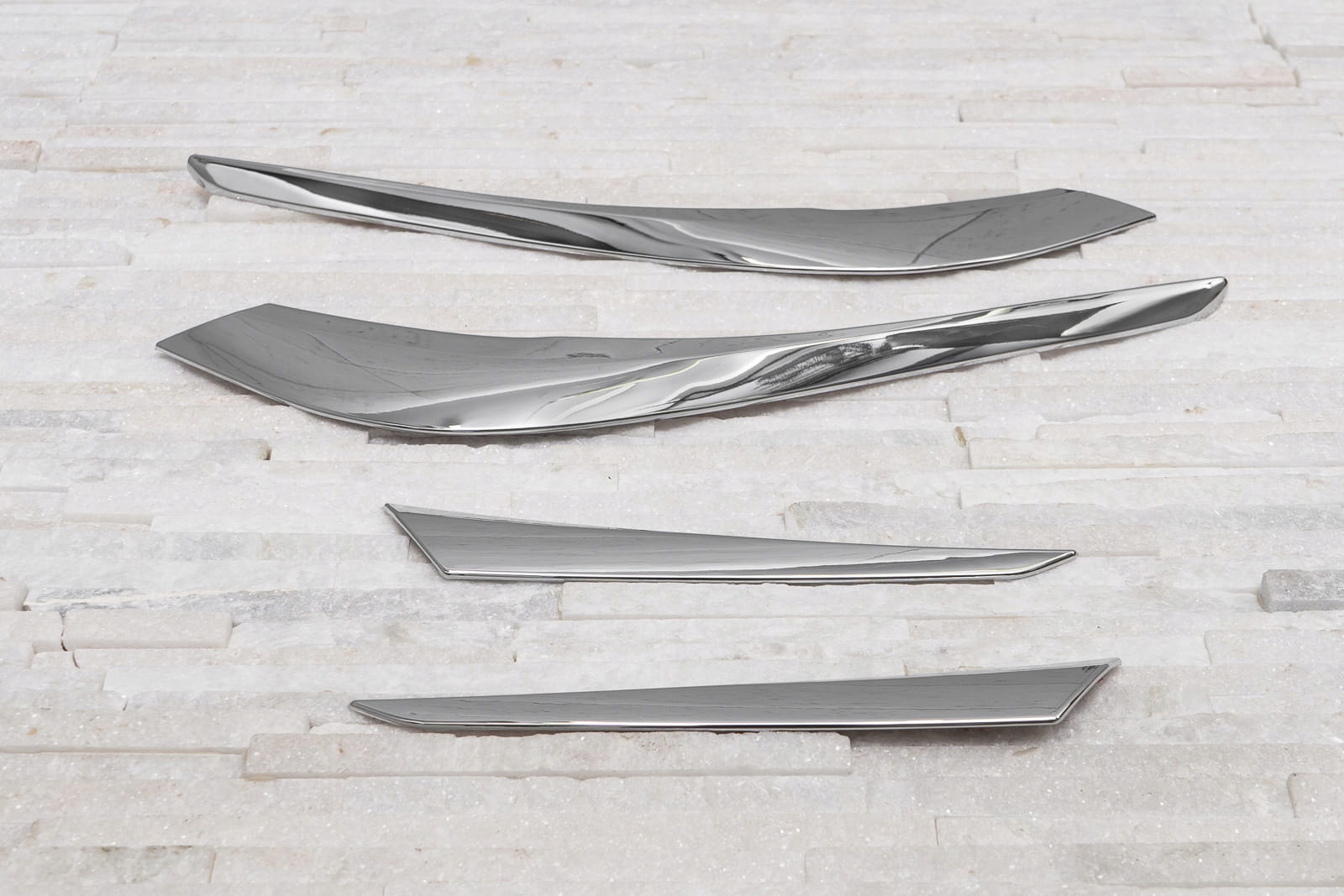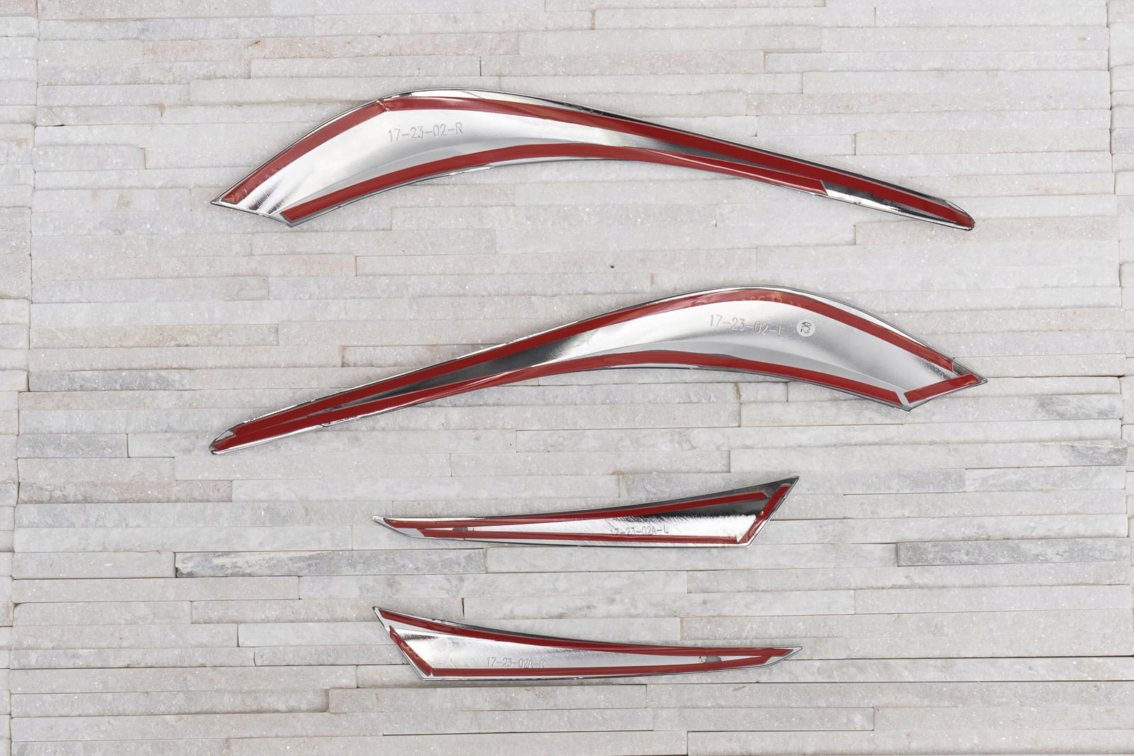 В комплект входит набор из четырех полосок для задних фонарей. Изделие изготовлено из высококачественного хромированного АБС-пластика. Крепятся они с помощью двустороннего скотча Scotch 3M, нанесенного на внутреннюю часть элементов. Мы рекомендуем профессиональную установку.