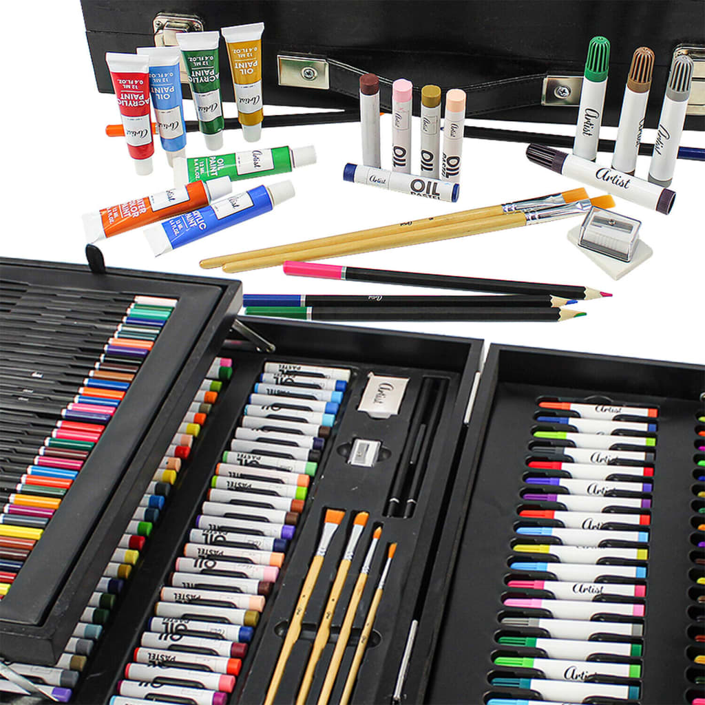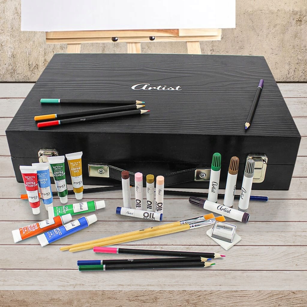 - Набор для рисования и раскраски в деревянном футляре - Полный набор, состоящий из 174 элементов. В набор входят: 34 карандаша, 54 масляных пастели, 12 акриловых красок по 12 мл, 12 акварельных красок по 12 мл, 12 масляных красок по 12 мл, 42 маркера. Коробка имеет размеры 45 х 32,5 х 10,5 см. Чемодан - удобное и удобное решение для хранения и переноски.