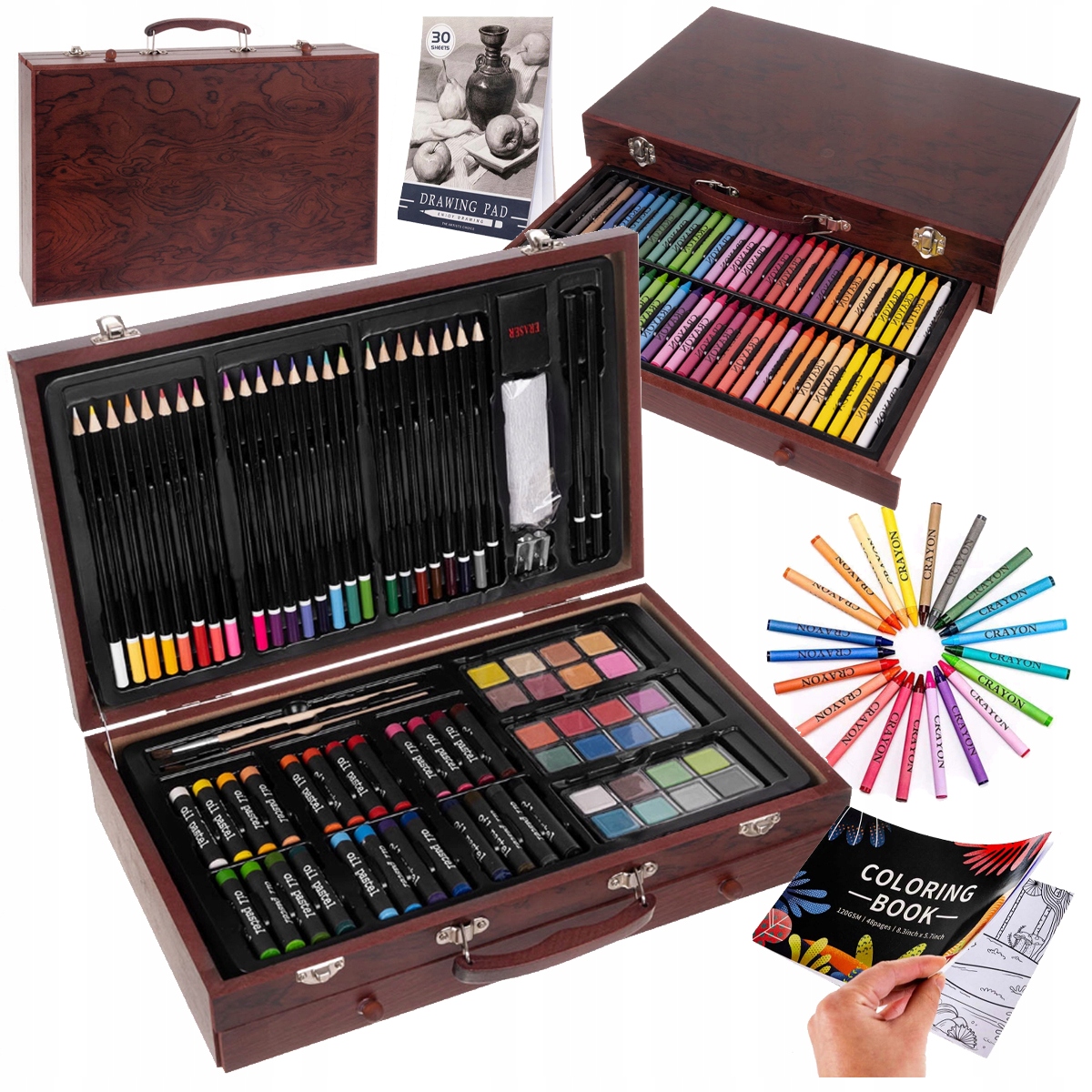 Набор для рисования имеет специальные отделения и выдвижной ящик, которые позволяют быстро и легко получить доступ к отдельным элементам, обеспечивая при этом их защиту и сохранение порядка. Вам не придется переживать, что принадлежности вашего художника выпадут при передвижении, у каждого мелка есть свое место.