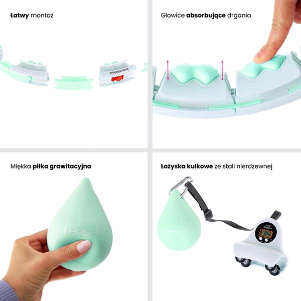 HHW06 HMS — регулируемый обруч с вибропоглощающими выступами и гравитационным шаром для фитнеса. Это позволяет одновременно тренироваться и массировать талию на 360 градусов. Он идеален, среди прочего: для укрепления и укрепления мышечного корсета. Благодаря регулируемой окружности HHW01 никогда не упадет во время тренировки, поэтому ваша домашняя кардиотренировка может быть длительной и приятной, что является гарантией еще более быстрого и лучшего результата! Устройство предназначено как для детей, так и для взрослых.
