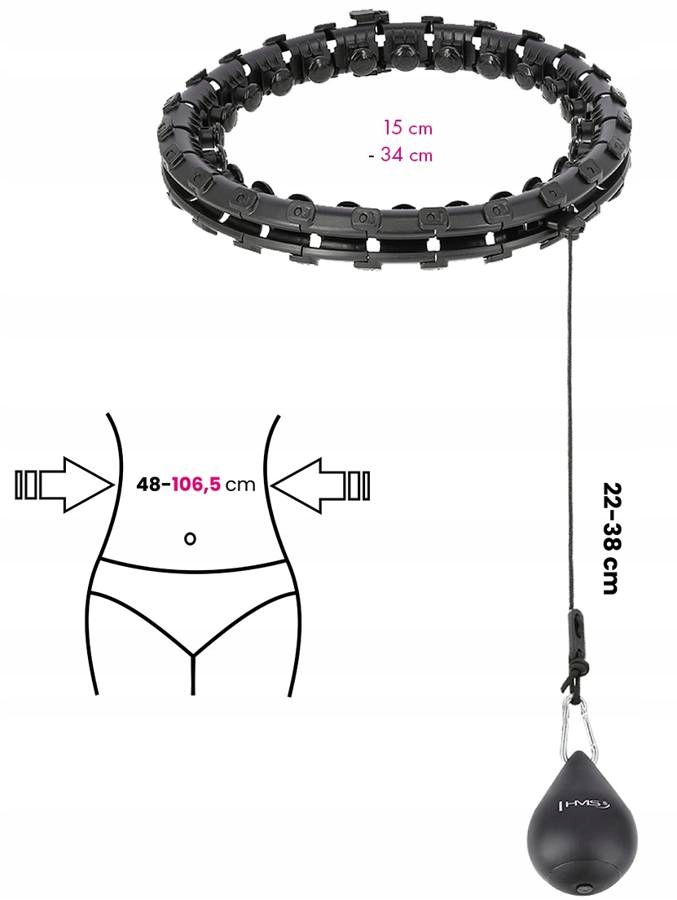 - Регулировка по окружности: 14–24 элемента, Обхват талии: 46–105 см, Диаметр 26–45 см.