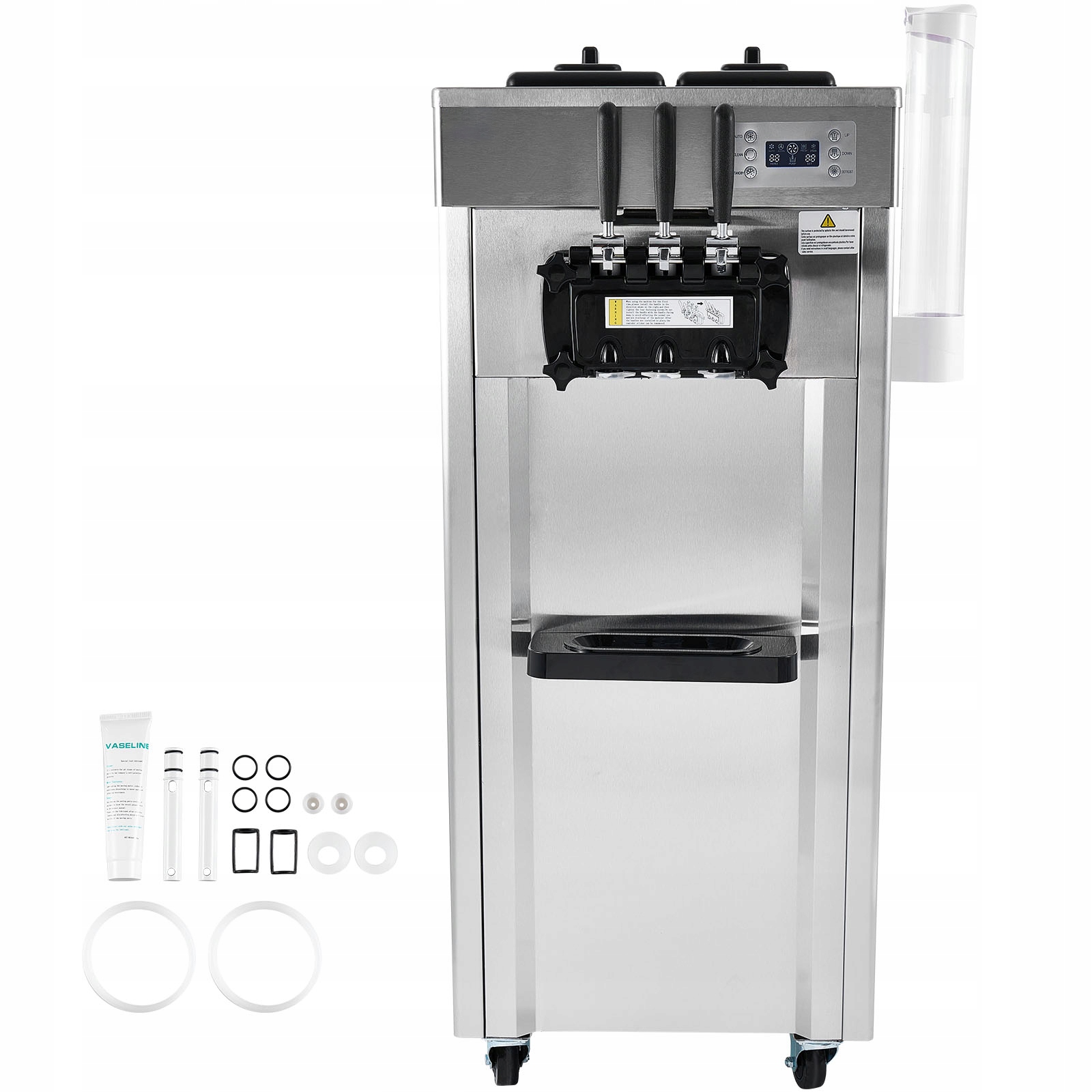 Сплошная и долговечная: коммерческая мягкая мороженое изготовлена из высококачественной из нержавеющей стали 401 и имеет резервуар из нержавеющей стали SUS304, который разрешен для контакта с продуктами питания. Он прочный, устойчив к ржавчине и легко чистить, что обеспечивает пищу и безопасность. Это идеальное дополнение к кафе с мороженым, кафе, барами и небольшими продовольственными киосками и обогатит любую коммерческую среду.