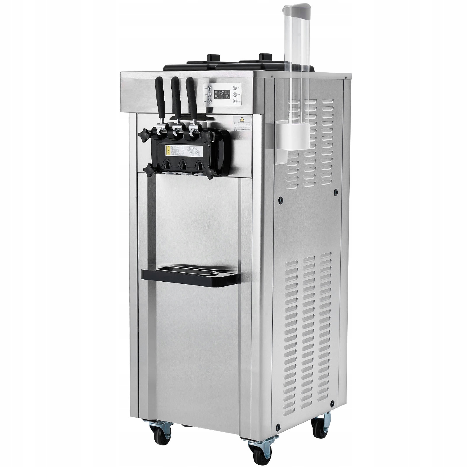 , разработанный для эффективного и простого использования, эта коммерческая мягкая мороженое позволяет производить высококачественное мороженое всего за 14 минут. Благодаря тихому, но сильному компрессору, он может производить до 5,5-8,2 галлонов (21–31 л) лед в час. Машина имеет расширенную технологию продувания, благодаря которой мороженое является более плавным, а также позволяет настроить твердость, чтобы адаптировать продукт к индивидуальным предпочтениям. Машина изготовлена из прочной из нержавеющей стали и имеет цилиндр из нержавеющей стали, допущенный контакт с едой, что делает его долговечным и простым в чистке. Идеально подходит для коммерческой среды, такой как салоны мороженого, кафе и маленькие пищевые стенды.