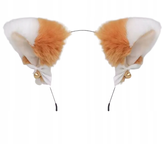 Коричнево-белая повязка на голову с добавлением колокольчиков и бантиком в виде кошачьих ушей .