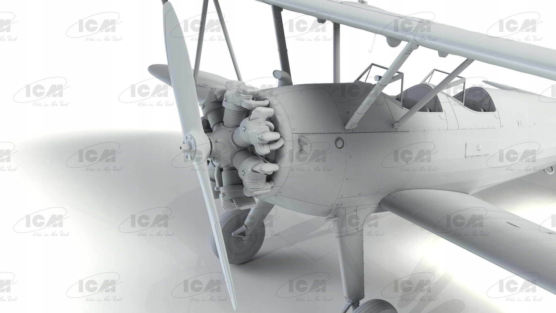 В комплект, предложенный ICM, входит пластиковая модель американского биплана в масштабе 1:32.