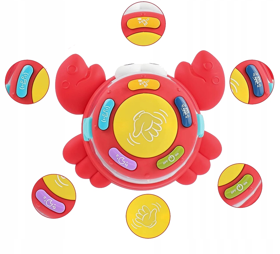 - Эффекты движения: Этот милый краб ползает, убегает и движется удивительными способами. что доставляет детям массу удовольствия.