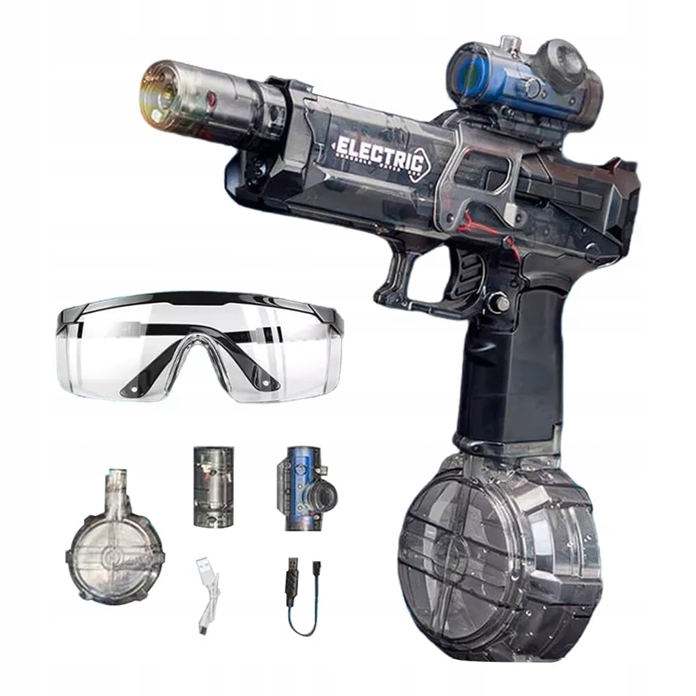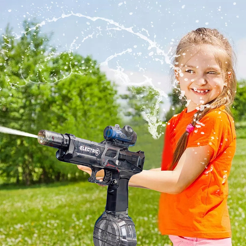 💧💧💧【 Эффективная система привода】: Этот автоматический водяной пистолет оснащен эффективной системой привода, которая обеспечивает непрерывный, прочный и постоянный поток воды. Благодаря этому вы можете насладиться отличными результатами стрельбы и сохранить преимущество в водных битвах. Мощная система питания делает устройство надежным и эффективным в различных игровых сценариях.