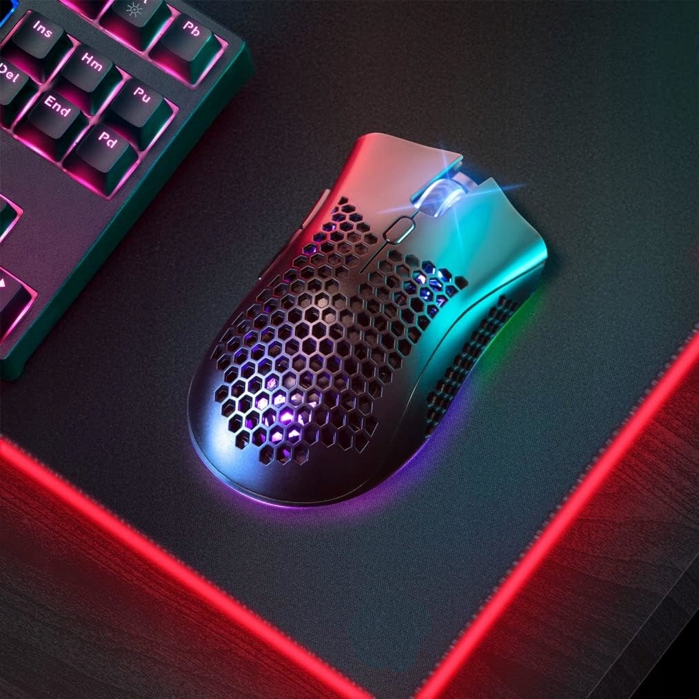 Легкий корпус с сотовой структурой (Игровая мышь оснащена корпусом с сотовой структурой. Она удобно лежит в руке, легкая и гибкая. , а крутые световые эффекты обеспечивают идеальные впечатления от игры. Подсветку можно отключить.