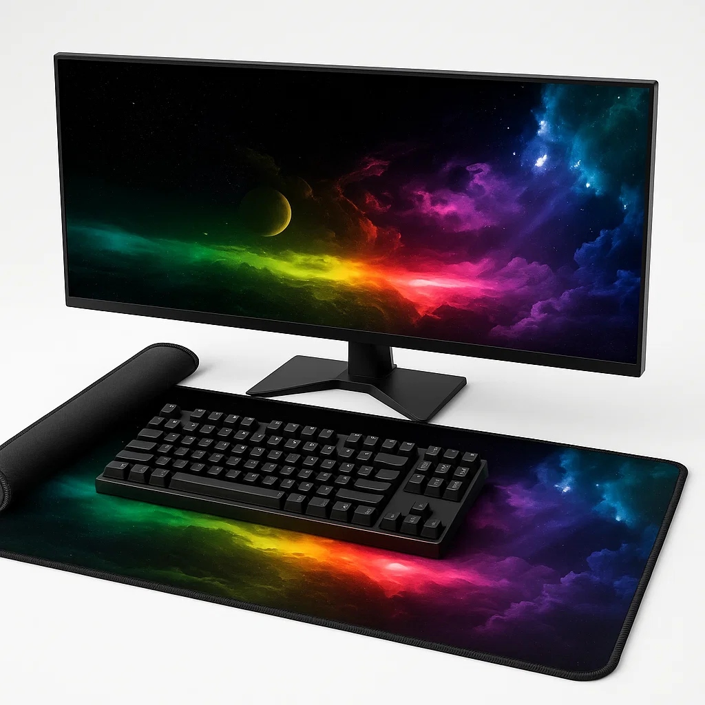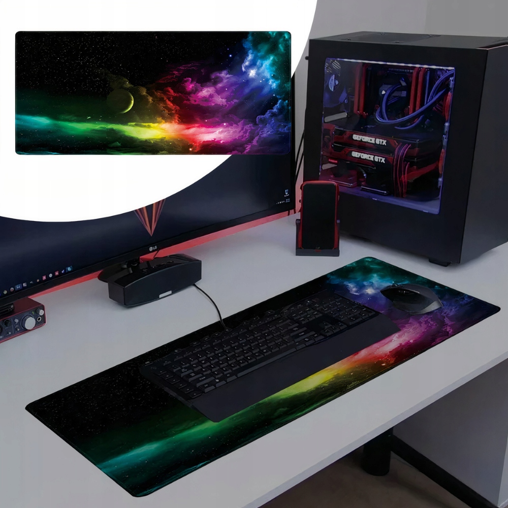 Размер XXL - 90 × 40 см b> - огромная поверхность позволяет вам разместить мышь, клавиатуру и другие аксессуары - полный комфорт и заказ на столе.