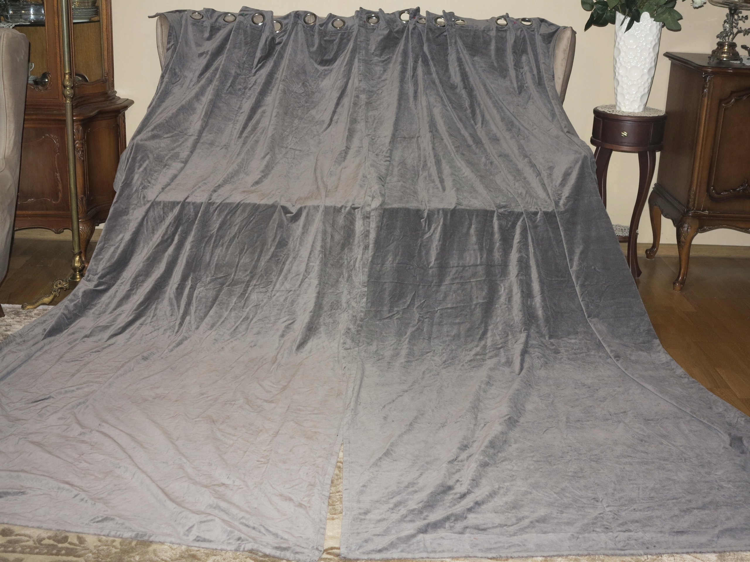 IKEA SANELA - КОМПЛЕКТ ВЫСОКИХ КРАСИВЫХ БАРХАТНЫХ ШТОР С МЕТАЛЛИЧЕСКИМ КОЛЕСИКОМ В КОМПЛЕКТЕ. ШТОРЫ ИЗ ТЕЛОХЛОПКОВОГО БАРХАТА, ТЕМНО-СЕРЫЕ (ЦВЕТ КАК НА ФОТО ШТОР, ВИСЯЩИХ НА ОКНЕ)