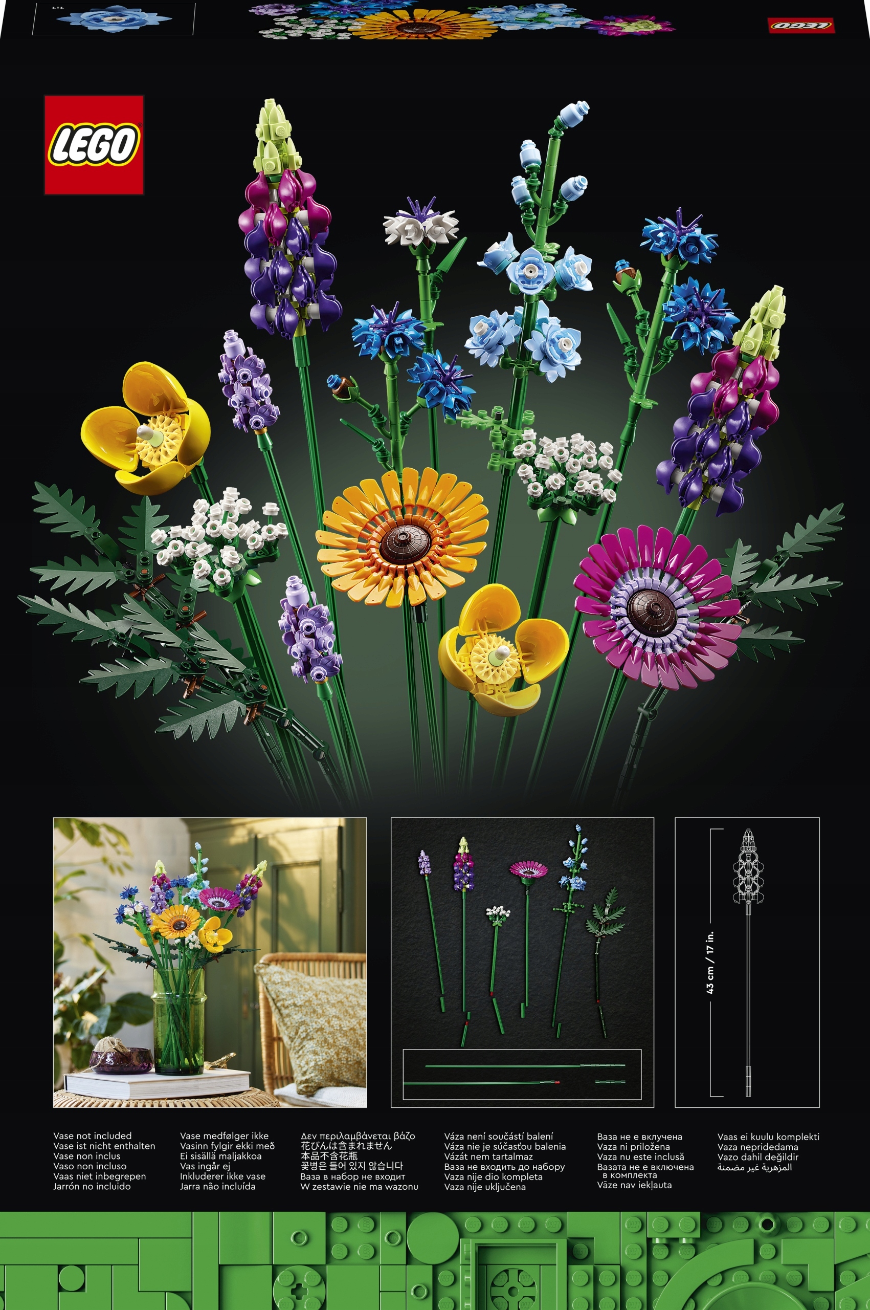 Посмотрите, как цветет креативность Составленные полностью из подробных блоков LEGO, букет полевых цветов включает в себя восемь видов цветов на регулируемых стеблях. Флористы -новички и энтузиасты цветов могут провести много часов на строительство и обнаруживать цветы, вдохновленные кукурузным цветом, лаванды, валлийскими маками, лесной пирожкой, кожистой папоротником, герберами, остросами и люппином. После завершения модели Lego Flowers можно помещать в вашу любимую вазу, создавая красивое украшение, которое будет сеять радость в каждой комнате.