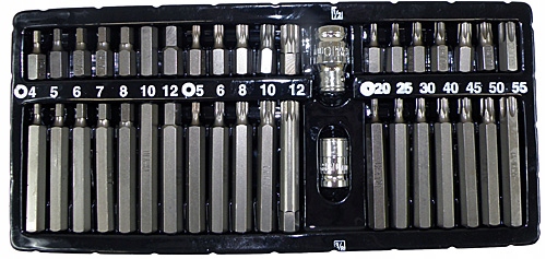 - 7 бит Torx T -20, Т-25, Т -30, Т-40, Т-45, Т-50, Т-55
