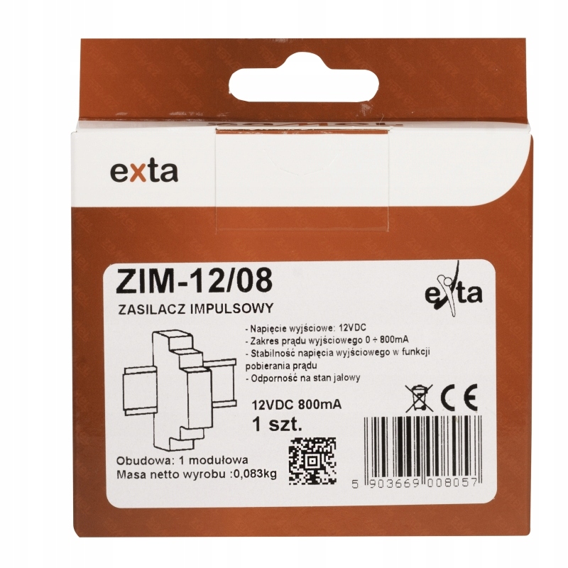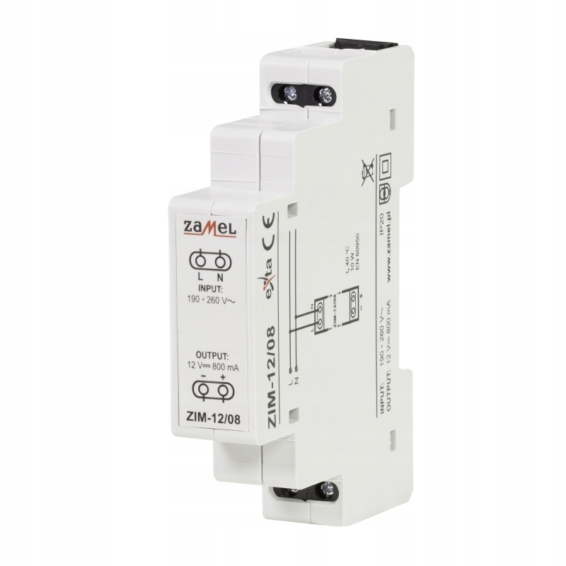 Імпульсний ДЖЕРЕЛО ЖИВЛЕННЯ 12V DC 0.8A ZIM-12/08 exta ZAMEL