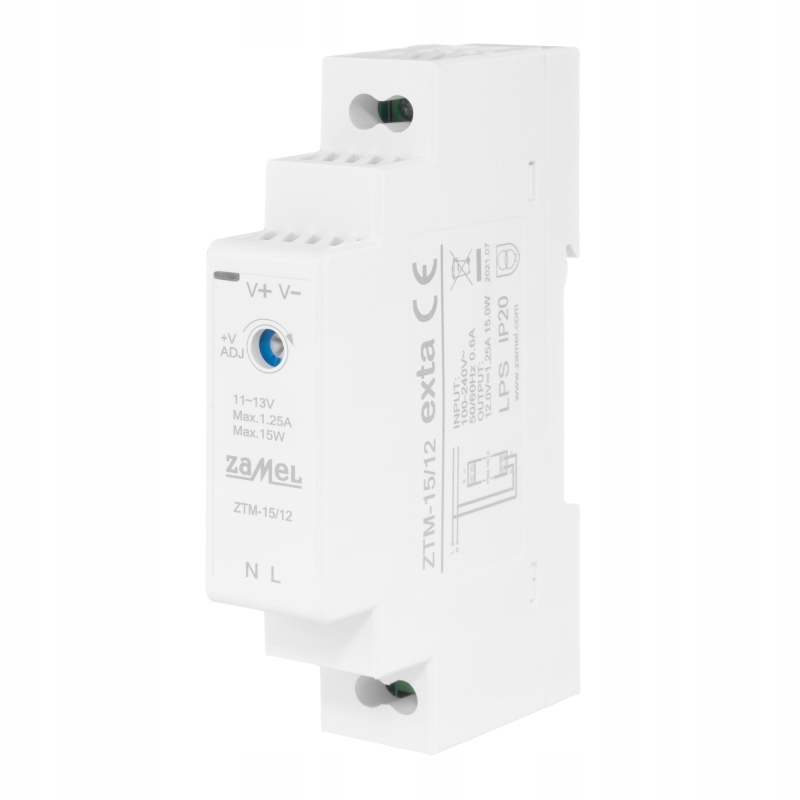 ИМПУЛЬНЫЙ ИСТОЧНИК ПИТАНИЯ, УСТАНОВЛЕННЫЙ НА РЕЙКУ TH-35 (DIN), 15 Вт, 12 В постоянного тока ТИП: ZTM-15/12